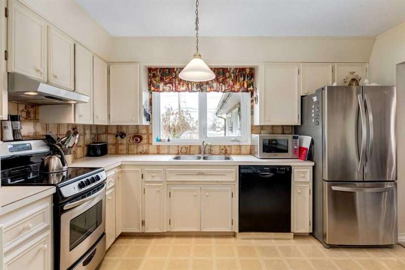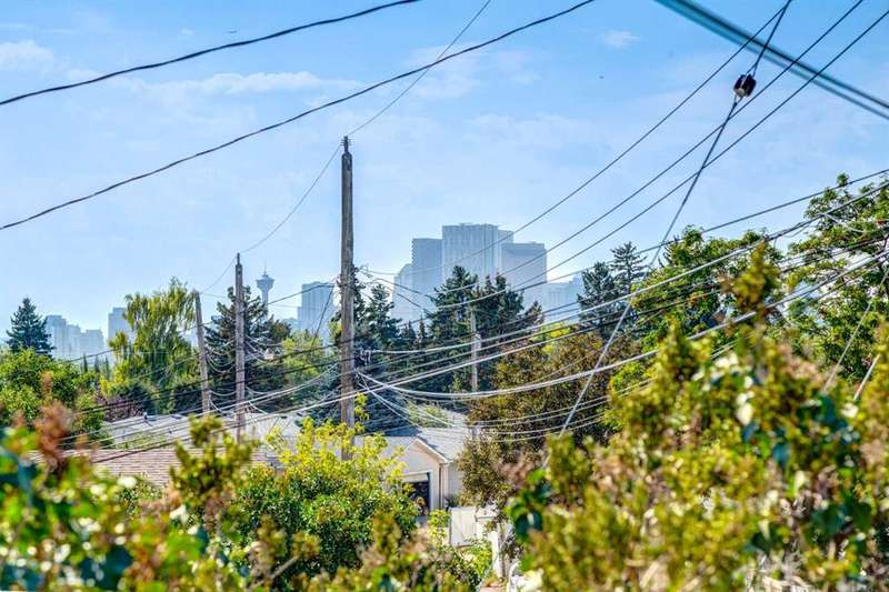 This 3-bedroom, 2-bathroom bi-level in Mayland Heights offers a large open layout, a walk-out basement, and views of both downtown and the mountains. With multiple living areas inside and outdoor spaces on both levels, there is plenty of room to relax and entertain. The main floor features a bright front living room, a dining area that connects to the kitchen, and a family room with a wood-burning fireplace and access to the upper patio where you can enjoy a scenic backdrop including the city skyline. The primary bedroom is a spacious retreat created by merging two bedrooms and could be re-partitioned to create two bedrooms on the upper level if desired. A newly renovated 3-piece bathroom with walk-in shower is adjacent. Flooring on this level is a mix of hardwood, linoleum, and carpet, with hardwood likely under much of the carpet. Custom window coverings are also included. The walk-out basement adds two bedrooms, a 4-piece bathroom, and a versatile rec room with large windows for natural light. The laundry area includes a full fridge and the storage room offers extra space along with a large chest freezer. From here there is direct access to the backyard, the walk-out patio with swing, and the single-car garage. This property has had only two owners, with the same family caring for it for more than 50 years. The location is 5.7 km from Calgary’s downtown core with quick access west to the mountains. The Bow River, pathways, the Calgary Zoo, and TELUS Spark are nearby along with parks and two schools. The west-facing backyard captures afternoon sun for a welcoming outdoor space. Shopping, restaurants, Deerfoot Trail, the Trans-Canada Highway, and the LRT are also close by. This is an excellent opportunity to own a home with space and a great location. Book your private showing today.