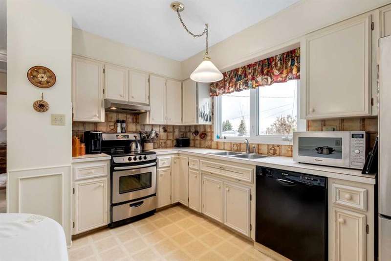 This 3-bedroom, 2-bathroom bi-level in Mayland Heights offers a large open layout, a walk-out basement, and views of both downtown and the mountains. With multiple living areas inside and outdoor spaces on both levels, there is plenty of room to relax and entertain. The main floor features a bright front living room, a dining area that connects to the kitchen, and a family room with a wood-burning fireplace and access to the upper patio where you can enjoy a scenic backdrop including the city skyline. The primary bedroom is a spacious retreat created by merging two bedrooms and could be re-partitioned to create two bedrooms on the upper level if desired. A newly renovated 3-piece bathroom with walk-in shower is adjacent. Flooring on this level is a mix of hardwood, linoleum, and carpet, with hardwood likely under much of the carpet. Custom window coverings are also included. The walk-out basement adds two bedrooms, a 4-piece bathroom, and a versatile rec room with large windows for natural light. The laundry area includes a full fridge and the storage room offers extra space along with a large chest freezer. From here there is direct access to the backyard, the walk-out patio with swing, and the single-car garage. This property has had only two owners, with the same family caring for it for more than 50 years. The location is 5.7 km from Calgary’s downtown core with quick access west to the mountains. The Bow River, pathways, the Calgary Zoo, and TELUS Spark are nearby along with parks and two schools. The west-facing backyard captures afternoon sun for a welcoming outdoor space. Shopping, restaurants, Deerfoot Trail, the Trans-Canada Highway, and the LRT are also close by. This is an excellent opportunity to own a home with space and a great location. Book your private showing today.