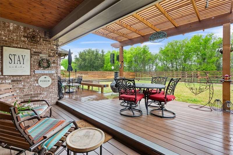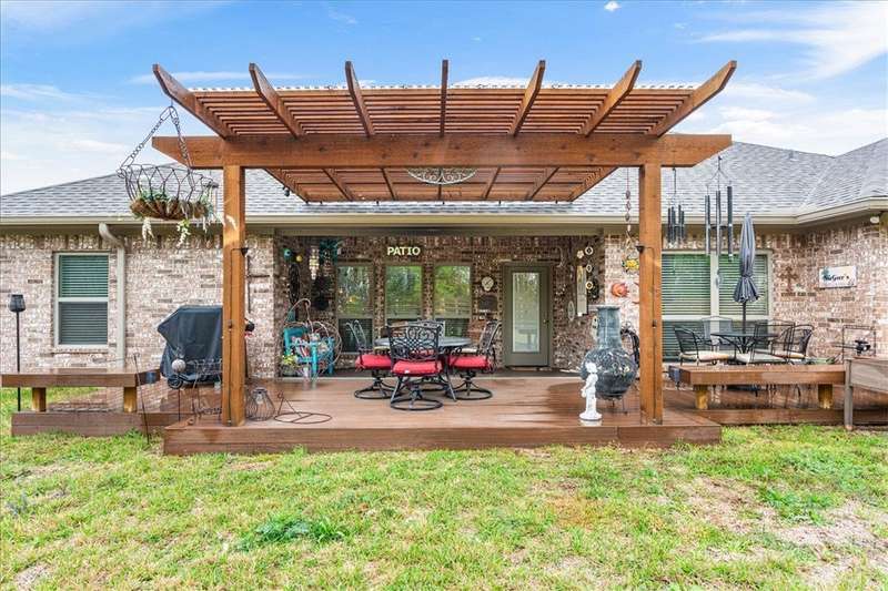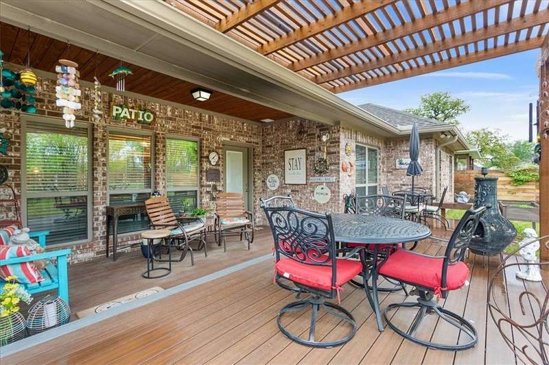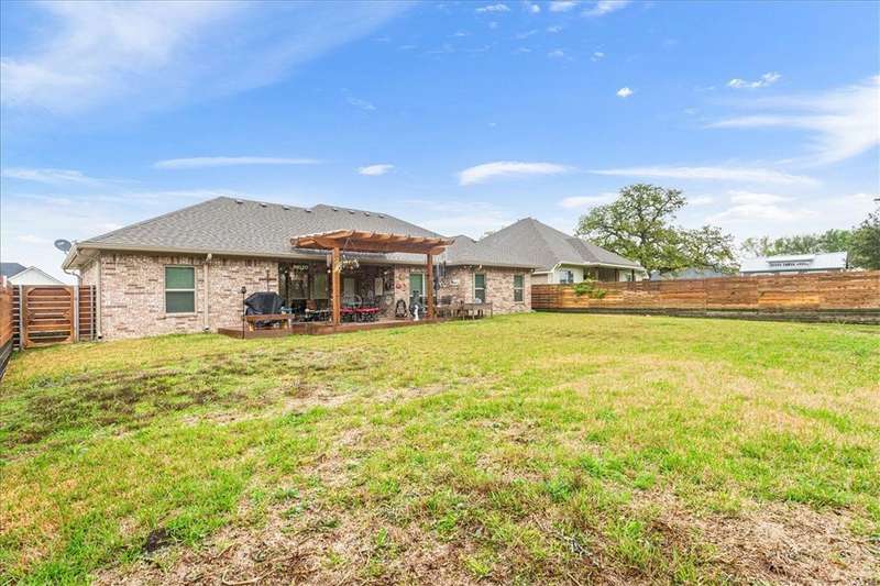 All buttoned up, and ready to go! This 3+/2/2 in Riesel's fastest-growing neighborhood has been well-loved and comes with all the finishing touches. You'll love the open floor plan, spacious kitchen island, and numerous windows that allow plenty of natural light. With a primary, isolated suite, you'll have plenty of privacy, and there's abundant space in the bathroom with dual vanities, a walk-in closet, and an oversized, tiled shower. Oh!! And this backyard is simply Heavenly! You'll fall in love with the custom privacy fence design, and this deck and pergola is a showstopper all by herself! With a quick, simple commute to Riesel, come see what this adorable Texas town has to offer. Affordable and available - come fall in love with your new home and extended family today!