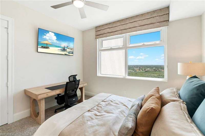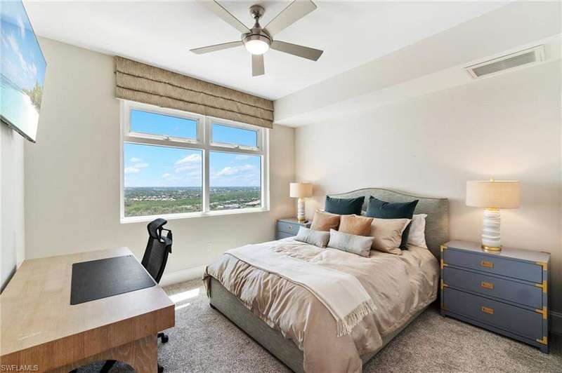 Welcome to elevated living on the 19th floor! This expansive 3-bedroom, 3.5-bath home offers a thoughtfully designed split floor plan and panoramic views in every direction. This captivating luxury residence offers the ultimate Florida lifestyle, complete with stunning Gulf Coast sunsets, modern and elegant decor and an array of exceptional resort-style amenities. THE LAYOUT As you step off the private elevator lobby into the entry way, you are greeted with sophistication and modern elegance. This extraordinary luxury abode features three spacious bedrooms, three full ensuite bathrooms, powder bathroom and an awe-inspiring western exposure that bathes the interior in natural light. The great room and primary suite showcase spectacular year-round sunsets through floor-to-ceiling windows. The living room is both generous and cozy, with a sitting area that looks out over the shimmering Gulf of Mexico. Sliding glass doors in both the dining room and primary bedroom lead seamlessly out to the lanai-ideal for entertaining or simply soaking in the breeze. The gourmet kitchen is a chef's delight, outfitted with high-end Thermador appliances, including gas cooktop. Transform your culinary desires with assorted cookware, dishware, utensils, wine glasses and more. The large balcony affords a remarkable outdoor kitchen with gas grill and intimate dining area that makes every gathering a memorable experience. Located in the heart of Bonita Springs, Bonita Bay is perfectly situated west of 41, close to renowned dining and shopping destinations like The Promenade at Bonita Bay, Coconut Point Mall, and Mercato in North Naples. Plus, you're just a short drive from Fort Myers Int'l Airport (RSW) for easy travel connections. COMMUNITY AMENITIES Experience the ultimate in Florida living within this gated community, offering 12 miles of scenic walking trails, four picturesque parks, kayaking, canoeing, bocce ball, pickle ball and tennis courts and the waterfront dining of Backwater Jack's Restaurant. Bask in the Florida sunshine at Bonita Bay's Exclusive Private Beach Park on Bonita Beach. A vibrant calendar of social events enhances the community atmosphere, making every day feel like a retreat. Within Seaglass at Bonita Bay, enjoy exclusive five-star amenities including a resort-style pool and spa, outdoor seating area with fireplace, state-of-the-art fitness center, billiard room, movie theater, additional guest suites & much more!