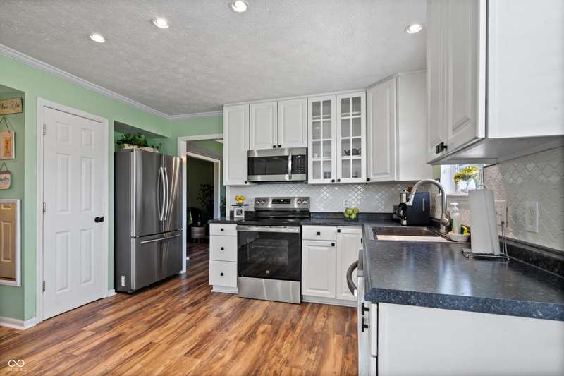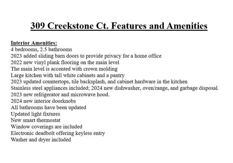 This 4 bedroom home is located on a quiet and secluded cul-de-sac with a pond in the back. Enjoy the large fenced backyard, private deck and patio with pergola. The interior is appointed with crown molding and new luxury vinyl plank flooring on the main level. You will love the new sliding barn doors that create a home office on the main level. This bright kitchen with tall white cabinets offers updated countertops, sink, & a tile backsplash. The stainless steel appliances are new in 2023 & 2024. The washer and dryer, as well as window coverings are also included. Enjoy the updated bathrooms, lighting, doorknobs, a smart thermostat, and new AC in 2023. Snag this great catch today!
