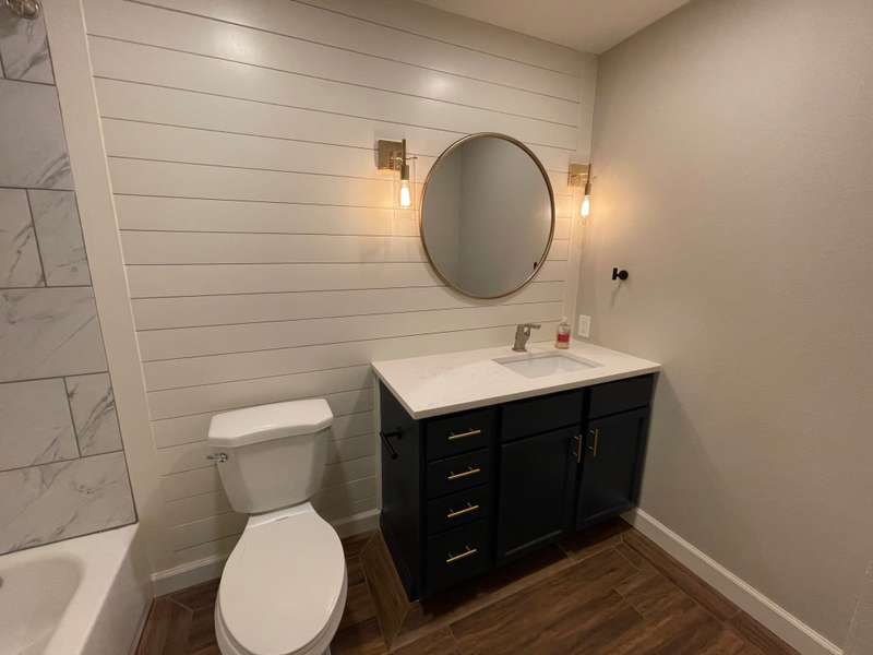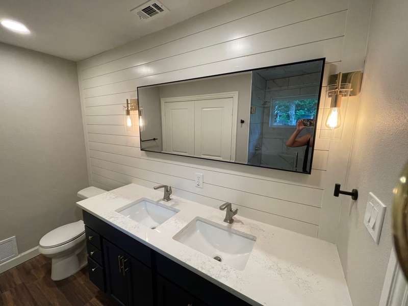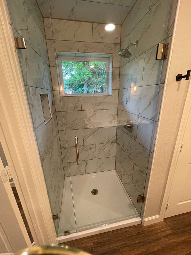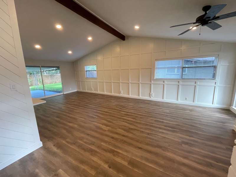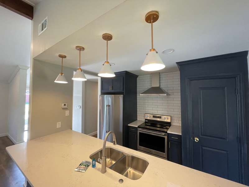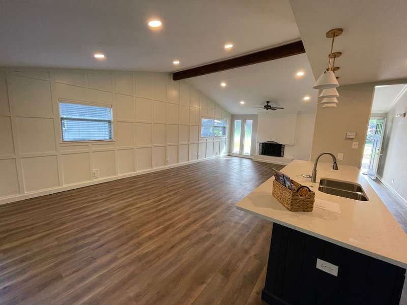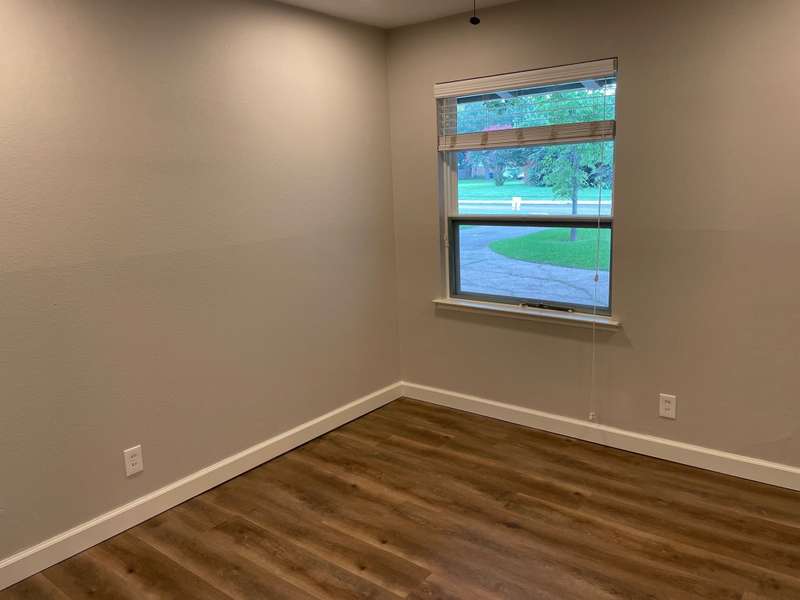 For Lease in Northwest Dallas. Three bedrooms, two full bathrooms, two car garage, fenced backyard. Kitchen and baths were updated in 2020 with modern touches. Primary bedroom has walk-in closet and ensuite bath with double sinks, a glass and tile shower, and full size washer, dryer utility closet. Second bath features a tub, shower combo. White blinds throughout the home feel bright and crisp. Kitchen offers Maytag stainless steel appliances, white quartz countertops, pendant lighting, recessed lighting. Range is electric. Living and dining areas combine to offer flexibility. Brick fireplace.
