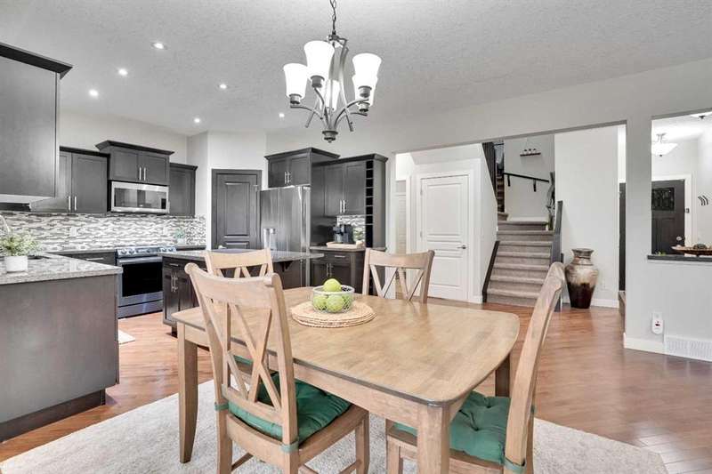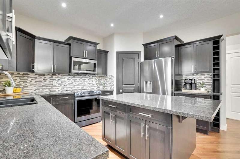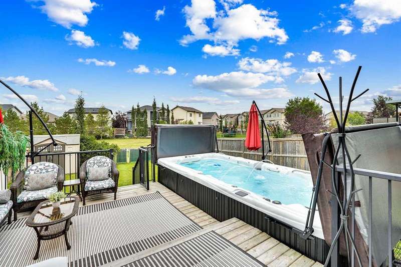 ***WELCOME HOME*** Nestled in a PRIME LOCATION on a HUGE LOT & backing directly onto the tranquil GREENSPACE & PARK, this beautifully UPGRADED & FULLY DEVELOPED family home boasts over 3000 sqft across 3 levels. The main level presents a stylish open-concept layout with an abundance of NATURAL LIGHT, featuring 9’ ceilings, rich hardwood flooring & EXPANSIVE WINDOWS throughout! Designed for everyday living & entertaining, the BRIGHT & AIRY Living Room with cozy gas FIREPLACE flows seamlessly into the Dining Area & Gourmet CHEF’S KITCHEN, complete with a Large Central Island, Eat-Up Bar, UPGRADED NEWER Stainless Steel Appliances, STONE Countertops & Corner Pantry, all showcasing STUNNING VIEWS of the GREENSPACE! Completing this level is a separate DEN/OFFICE, Mudroom with built-in Open Lockers & Bench & 2pc Powder Room. Upstairs, your ENORMOUS PRIVATE MASTER RETREAT features a large WALK-IN closet, 5pc ENSUITE, complete with Double Vanities, Walk-in Shower, & an oversized Corner Soaker Tub. A HUGE BONUS ROOM with custom BUILT-INS, 2 additional Bedrooms & another FULL Bathroom round off this level. The FULLY FINISHED lower level features a Large FAMILY/REC Room, 4th Bedroom, Full 3pc Bathroom & plenty of STORAGE SPACE. This is the PERFECT spot for movie nights with the family or having friends over for the big game! Ahhhhhhh… Time to Relax & Unwind… Bask in the morning sunshine in your EXPANSIVE Backyard Retreat & enjoy the peaceful VIEWS with a warm cup of coffee from your OVERSIZED Two-Tiered DECK, or later in the day fire up the BBQ, take a dip in the MASSIVE 17ft SWIM SPA/HOT TUB or simply relax with your favorite drink with friends around the Built-in Fire Pit! Take a stroll through the PARK & WALKING PATHS directly out your back gate… the perfect EXTENSION to your OUTDOOR SPACE! Your fully FENCED Backyard also includes 2 storage sheds. Additional RECENT UPGRADES include: NEW Paint, several NEW Appliances, NEW Tankless Water Heater, Central A/C, Central VAC/Electric Dustpan, Water Softener, Security System, Cameras & MORE! Located in a VIBRANT, Family-Friendly Community surrounded by Scenic PATHWAYS, Beautiful GREENSPACES & POND & Year-Round outdoor Recreation, Luxstone is loved for its strong sense of Community, exceptional livability, & countless nearby AMENITIES. Simply MOVE IN & start making new memories with your Family in this Beautiful TURN-KEY Home! **Note: additional washer/dryer rough-in on main floor**