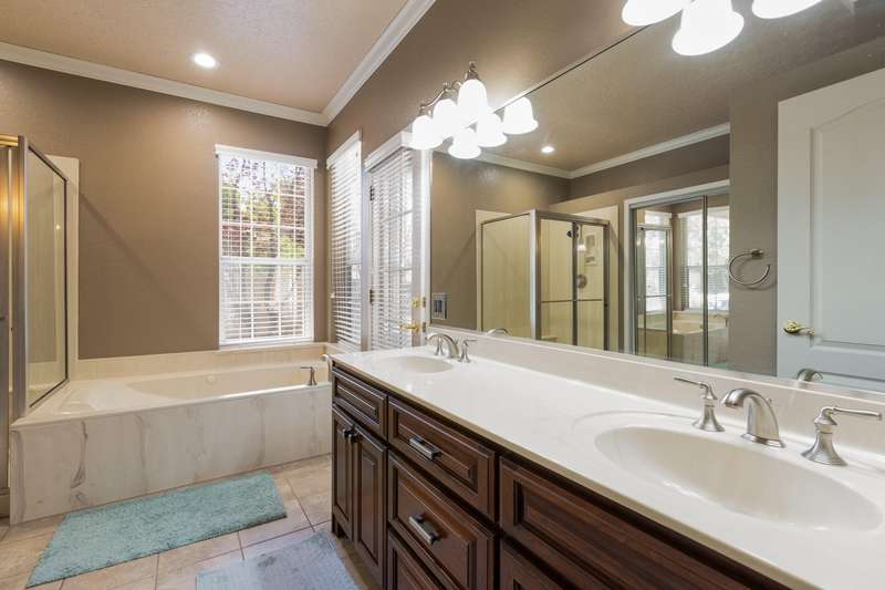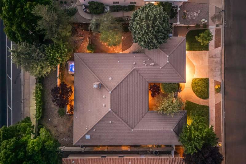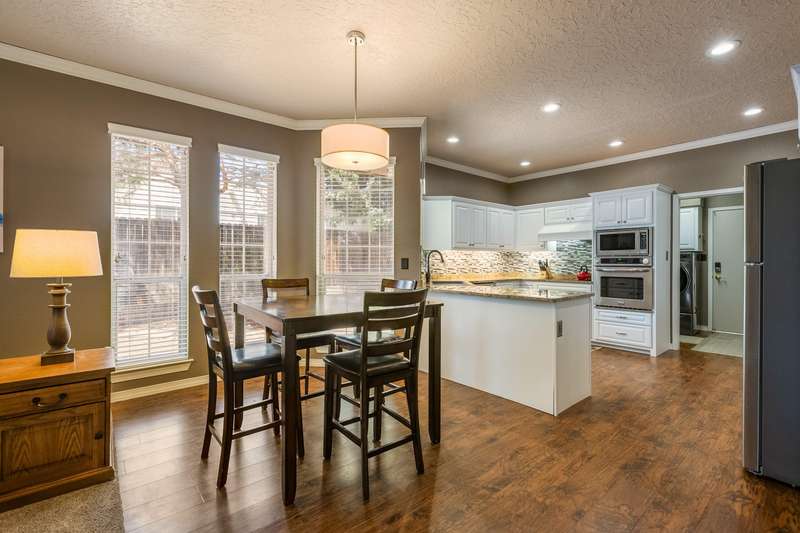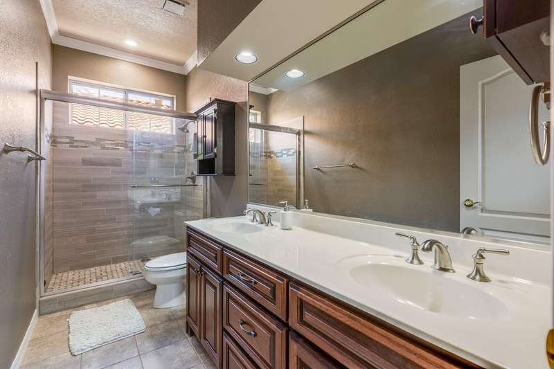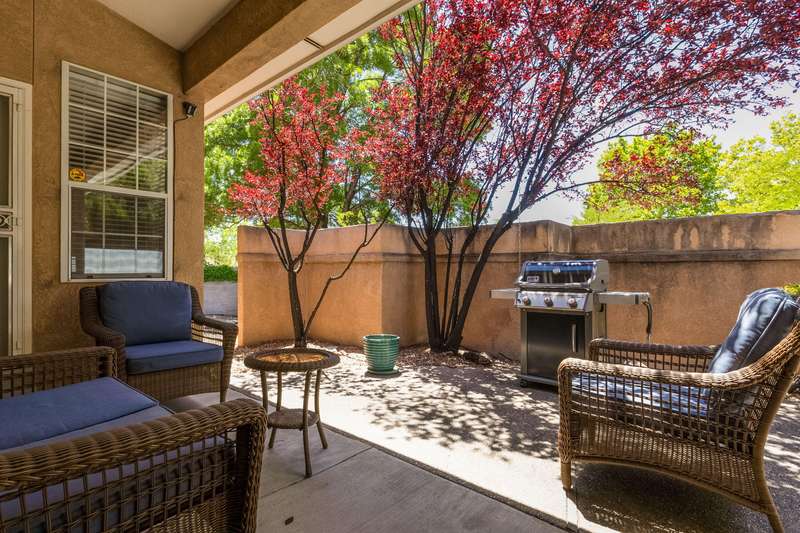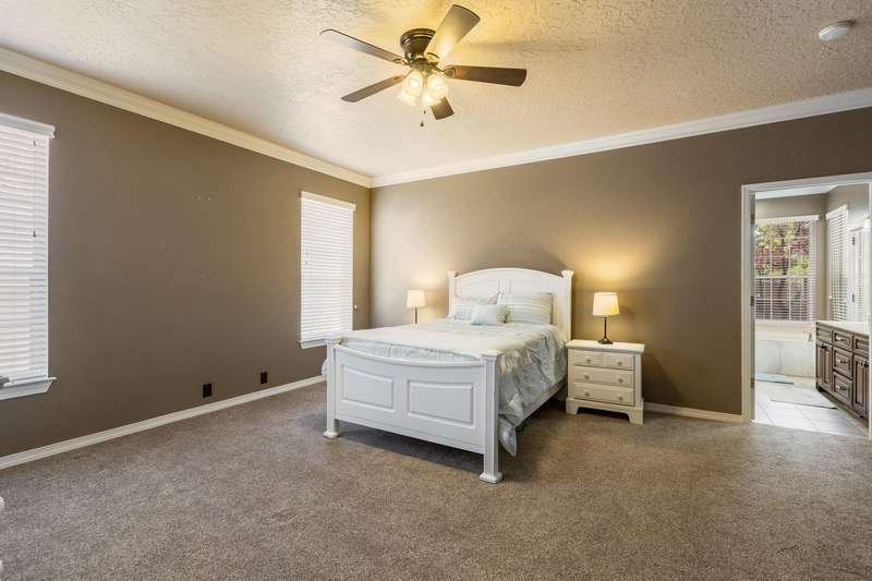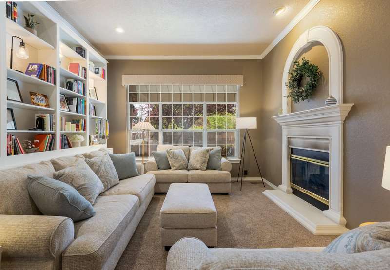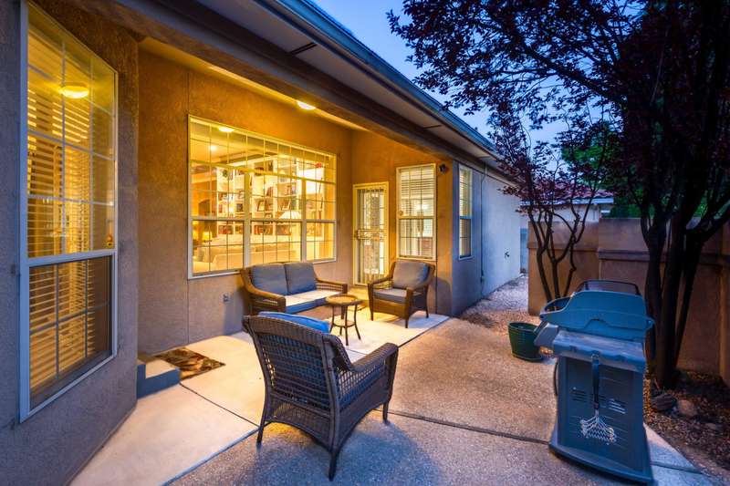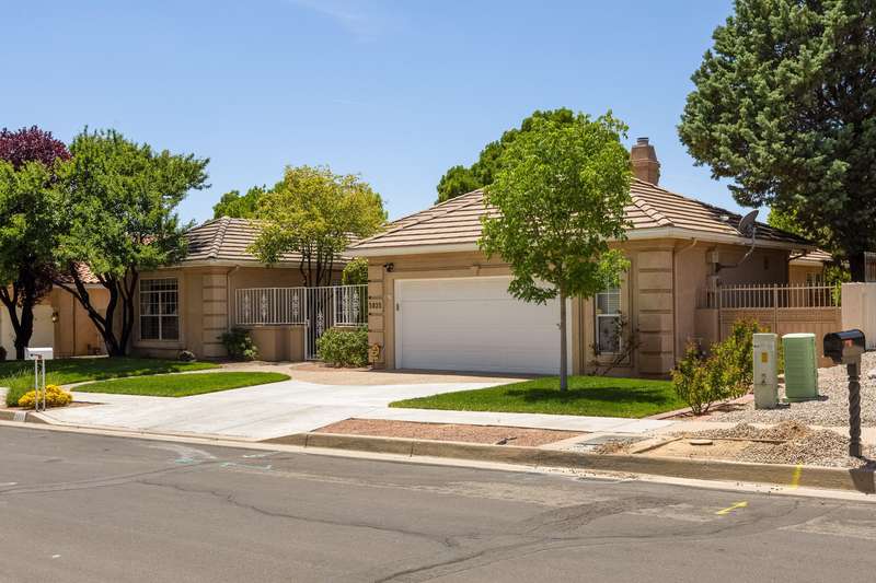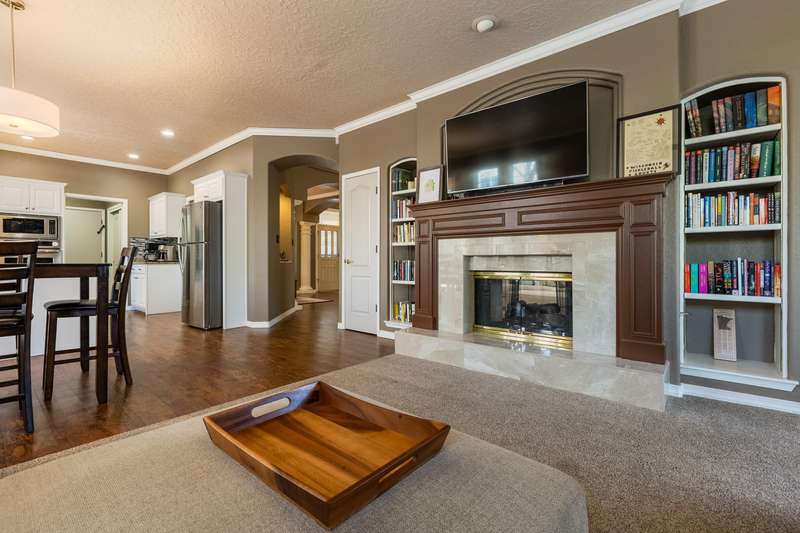 Elegant and updated single story Peppertree home! Formal living room with raised ceiling, crown moulding, beautiful wall of bookcases/display shelves and two way fireplace. Generous formal dining with easy access to kitchen with granite counters and updated cabinets. Kitchen is open to cozy den with fireplace and access to rear yard. Convenient laundry room and half bath. Updated hall bath with double sinks. Primary bedroom includes walk -in closet and update bath with walk-in shower, soaking tub, double sinks and patio door leading to hot tub. Updated Vinyl Plank flooring, tile, and carpeting. Excellent schools - Georgia O'keefe, Eisenhower and Eldorado. Lovely area for walking and riding bikes!