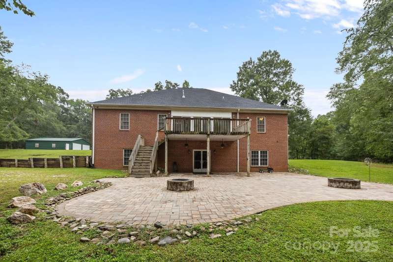 Nestled on 26 serene, wooded fenced acres, this charming brick residence offers privacy and multiple possibilities. The home itself sits in the center of the property and is fenced in from rest of acreage. On the main floor, you'll find 4 beds & 3 full baths, all within a bright, open floor plan featuring a living area w/ custom built-ins, study/sitting room, formal dining rm, & an open kitchen-perfect for both daily living & entertaining. A lovely lanai and large deck to enjoy outside. The fully finished basement is designed as the ultimate gathering space w/ a custom bar, expansive entertainment area, bath, & plenty of room for games,relaxation, seperate living quarters, storage or even a small business. Off the basement is a large paver patio with two stone firepits. A new (2024) architectural shingle roof, spring water & whole-house generator provide both style and peace of mind. Outbuilding is 36x38-heated/cooled, water and 200amp electric for parking, storage or workshop.