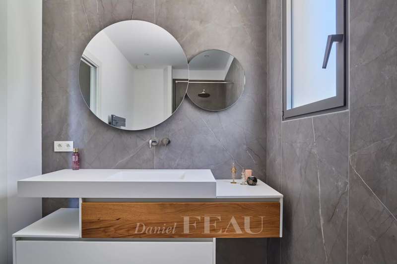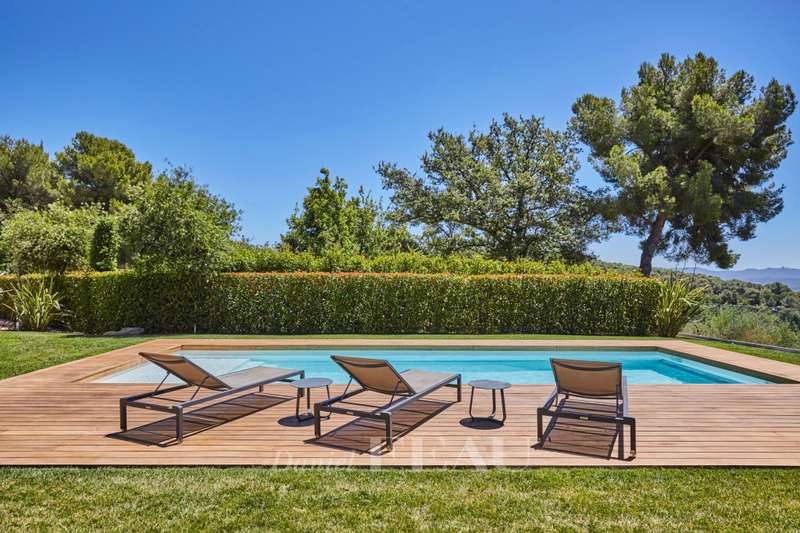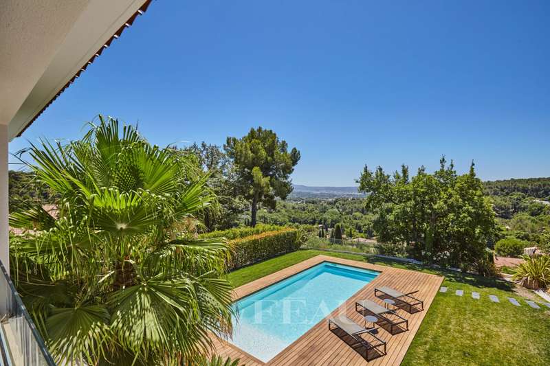 This renovated villa offering 220 sqm of living space is in a privileged location 10 minutes west of Aix-en-Provence. Benefiting from a panoramic view, it includes a living/reception room bathed in sunshine, a fully equipped kitchen, a master suite with a shower room, three spacious further bedrooms including two suites enjoying open views, and three bathrooms. Set in a leafy 1762 sqm plot with a salt-filter swimming pool as well as several parking spaces. The interior photos are non-binding as renovation is in process.