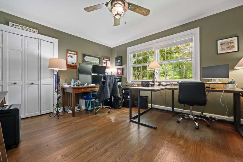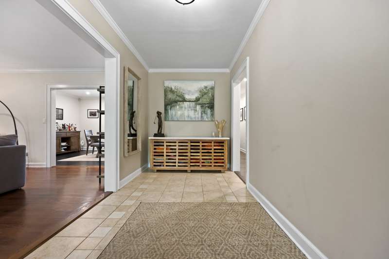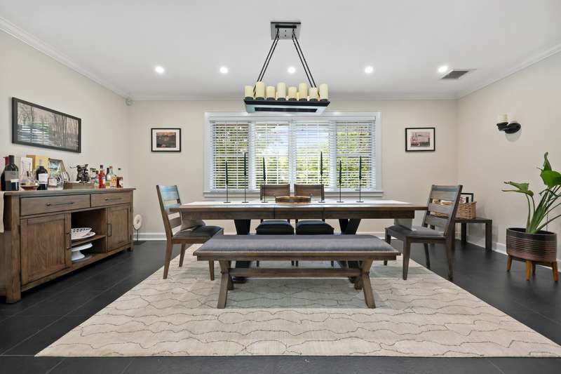 This inviting 4-bedroom ranch sits on one level acre in a great location. Wraparound driveway leads to a welcoming foyer and huge family room with fireplace, play area and two seating areas. Primary suite with walk-in closet and en-suite bath; as well as two large bedrooms and a full bath on one side of the house. Dining room with bar and kitchen leads to large Azek deck, ideal for outdoor entertaining. Separate guest suite with full bath would make a great in-law or nanny suite. Laundry room, mudroom and attached 2-car garage. Updates include newer landscaping and freshly painted interiors. HVAC, duct insulation, and hot water heater were all replaced in 2024. For golf lovers, there's a Tom Fazio-designed Swilcan Bridge, replica from St. Andrews in the front of the front of the property.