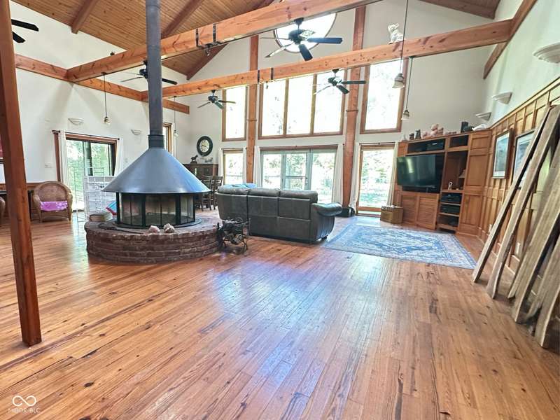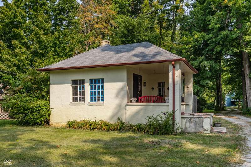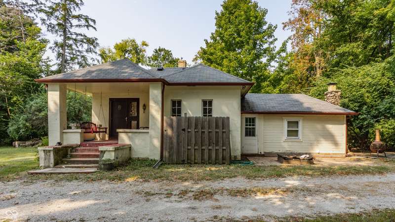 1414 E 116th Street has a prime location on the north side of 116th street just west of the Westfield Blvd/Rangeline Rd roundabout in Carmel. Tucked between two established neighborhoods it is close to shopping, Central Park and more. This property offers 3.62 wooded acres with two detached homes. The main residence, approx. 4,212 sqft, includes 5 bedrooms, 4 full and 2 half baths. Originally built in the 1930s with later additions. The front home home is a 702 sqft 1 bed/1 bath bungalow, formerly a rental. The lot includes mature trees, partial fencing, an outbuilding, and a currently inoperable in-ground pool. Roof is newer. Property sold AS IS.