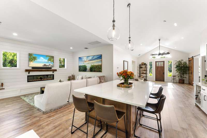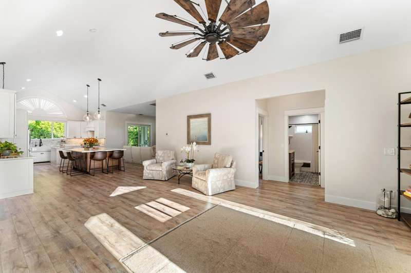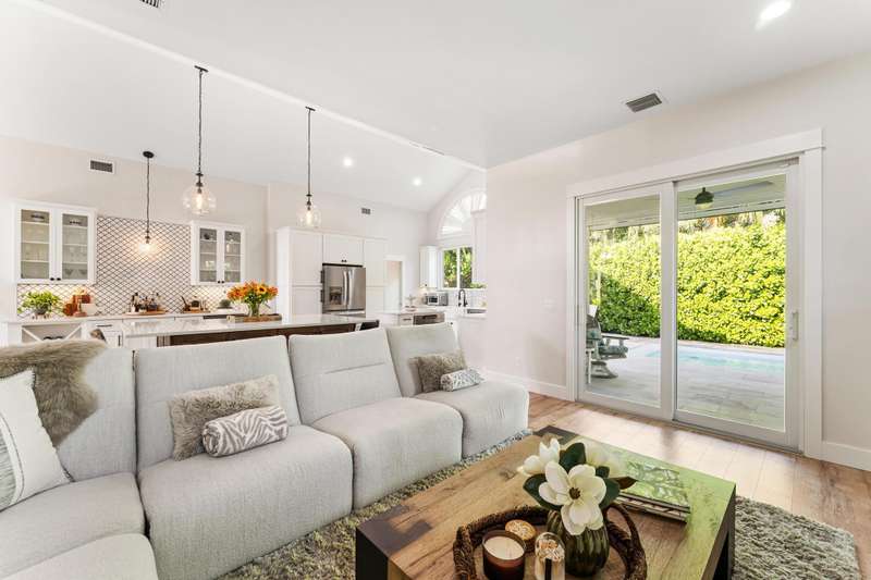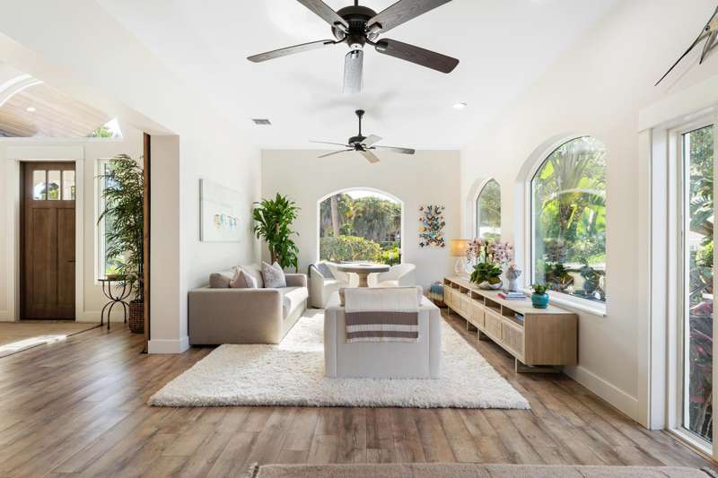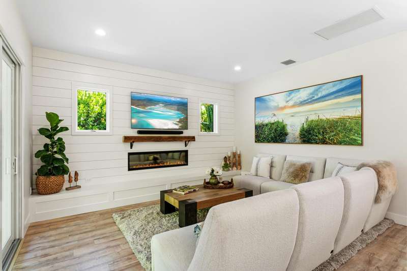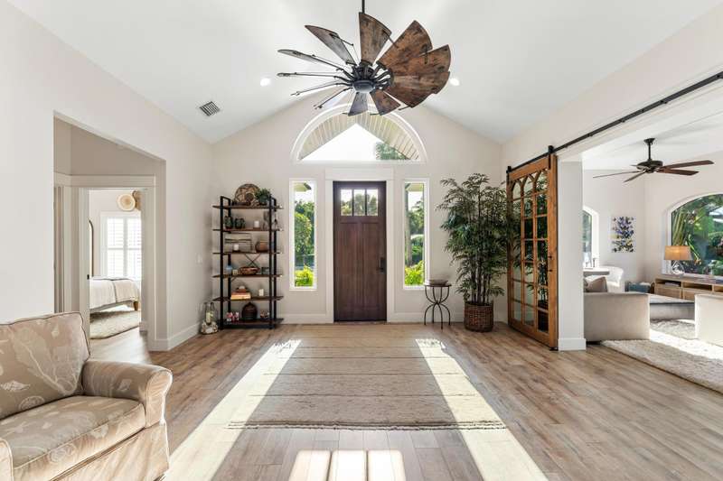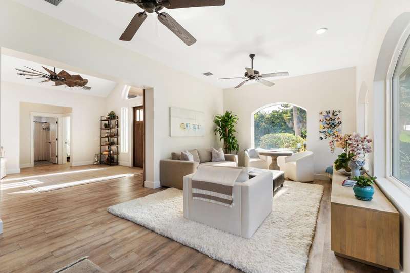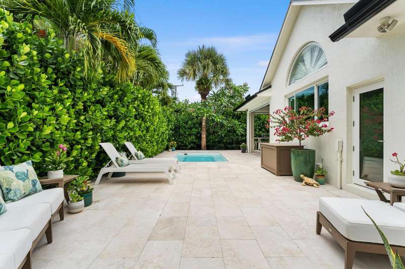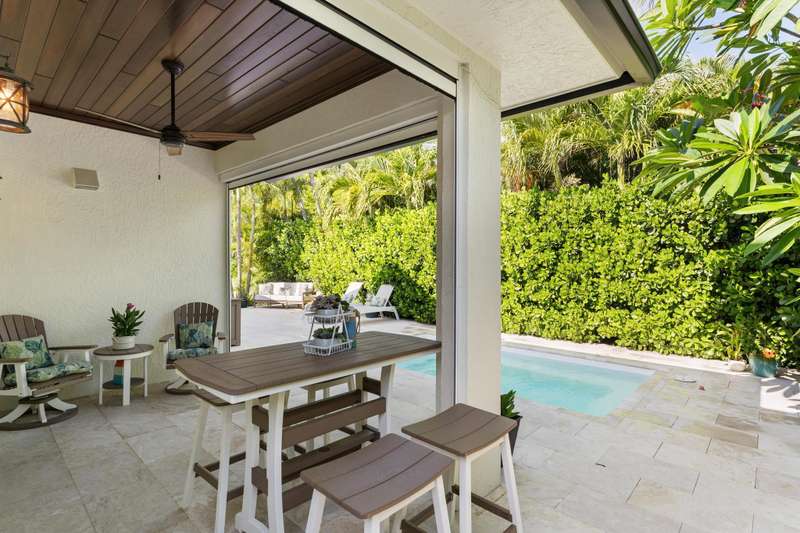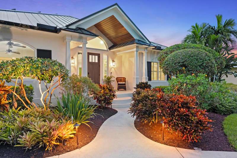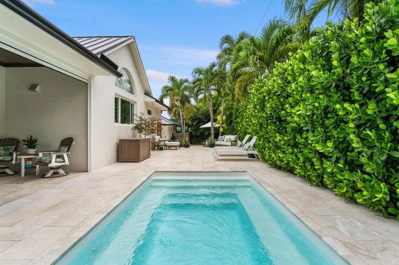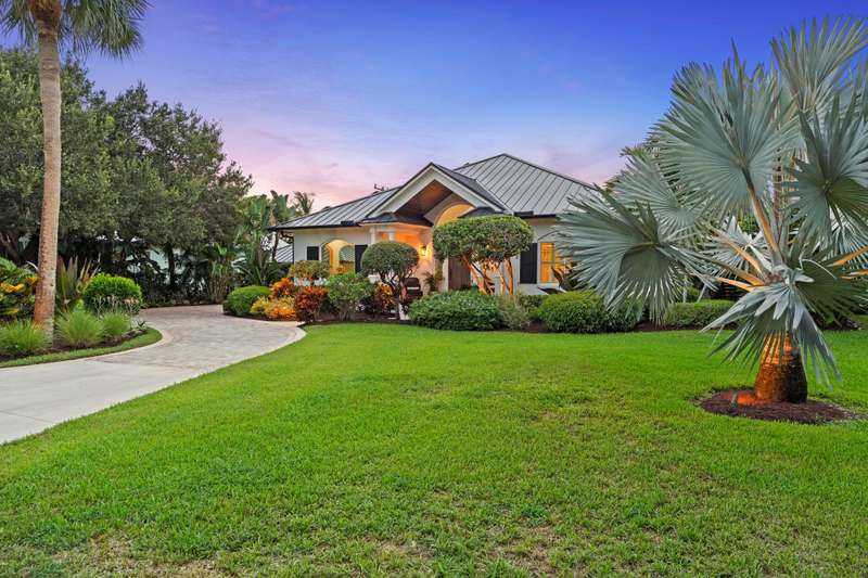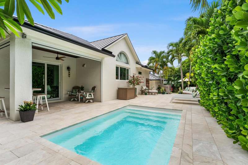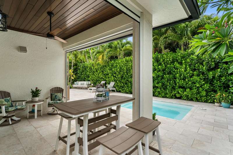 This Downtown Stuart-area home exudes true Florida style with functionality. Pride of ownership is felt the moment you cross the front door. New impact glass windows & doors, a reconfigured kitchen with large gathering island, & bar area beckon the true entertainer. Separate living room offers picture window views of the lush landscaping. Additional sitting area with accent fireplace. Garage doubles as an air-conditioned life/workspace. Outside, the home shines day or night, with multiple seating areas, plunge pool, gas-fed firepit, and water feature. Upgrades include home generator, 2023 new roof, owned solar panels & SPAN home center. A bonus, 40-plus foot dock at the Outrigger Harbour Marina (Jensen Beach) & 24k lift offered for $325