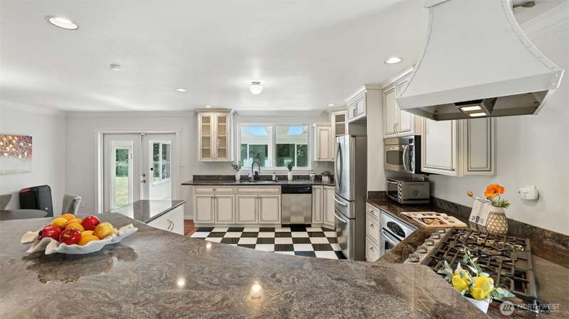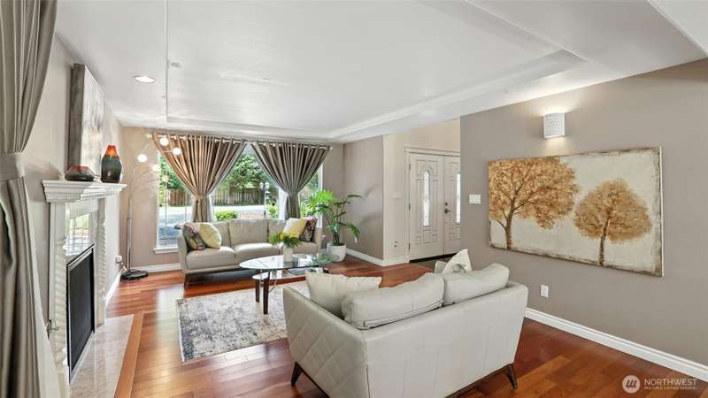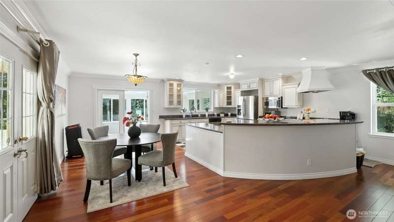 One of a kind Luxury Estate. Income-generating opportunity on 3.79 gated acres in the Lake Kathleen community! The 3,260 main home greets you with a grand entry with sweeping staircase, formal living/dining with tray ceilings, a chef’s kitchen with white cabinetry & stainless appliances, sunroom with skylights with a custom indoor koi pond, and a spacious family room with fireplace. French doors lead to an oversized primary suite. Dedicated office, 3-car garage. Updated Guest house with approx 2,000 sq ft offers potential 3 bonus rooms, 1.5 baths, kitchen, living space. French doors leads private green belt. Ideal for Airbnb guests, multi-gen living, or rental income. Top-rated schools Issaquah schools and close proximity to the lake.
