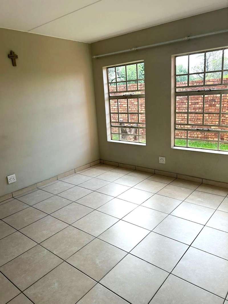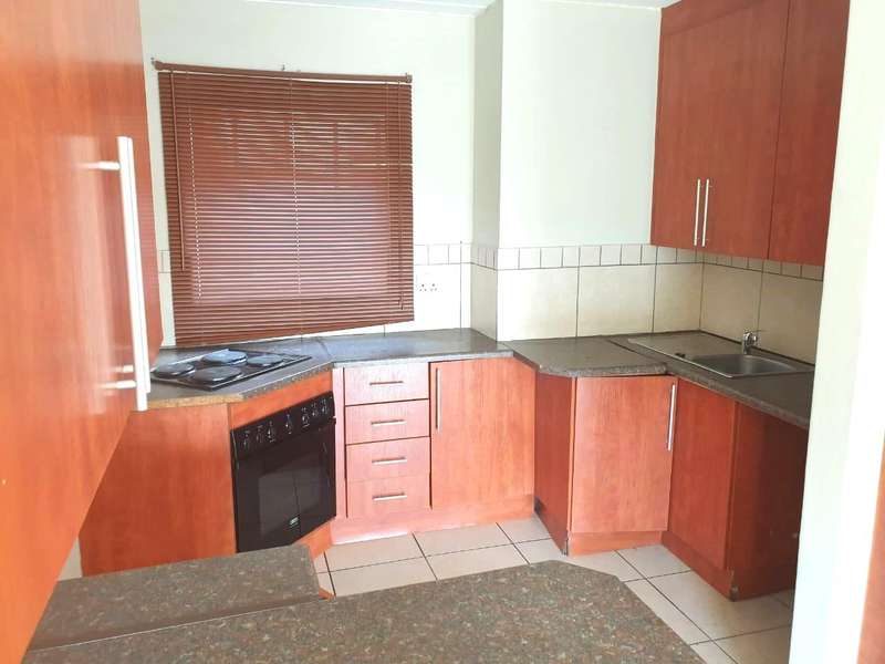 Neat and secure ground floor apartment available in the popular Hoeveld Park area. This unit offers 2 bedrooms with built-in cupboards, 1 bathroom, and an open-plan kitchen and lounge area. A single carport provides secure parking. Extras include a prepaid meter for electricity. Water and other services are not included in the rent. Ideal for a young couple or small family looking for comfortable and affordable living in a convenient location.