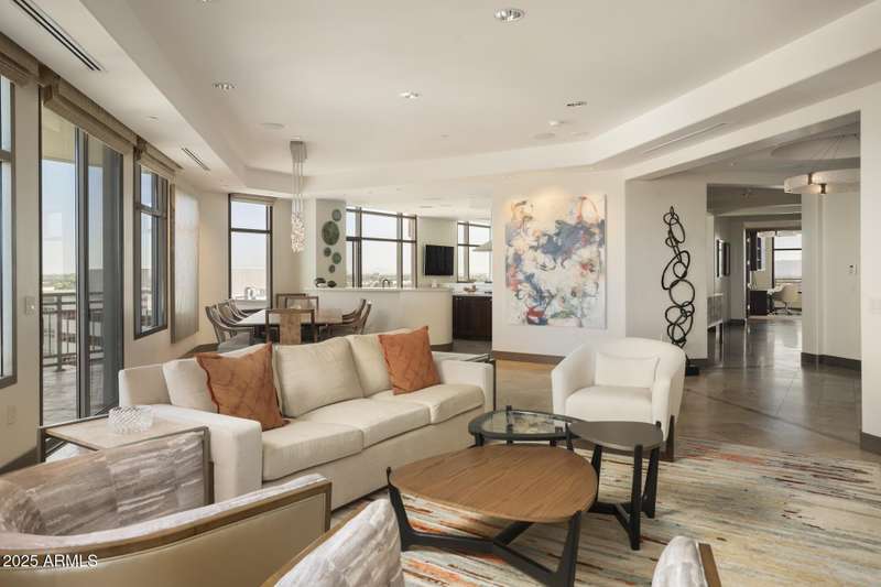 This three-bedroom, three-bathroom unit (plus a powder room) provides nearly 4,000 square feet of indoor/outdoor living space, giving it the feel of a spacious private home. Penthouse 1203 features a unique, non-linear floor plan with multiple areas perfect for entertaining a crowd, hosting intimate dinner parties, or simply relaxing with a book. Recently updated and upgraded finishes throughout include a newly remodeled primary suite and bathroom, gorgeous lighting fixtures, automated window treatments throughout, and plush carpet in the bedrooms. An expansive, light-filled kitchen featuring top-of-the-line appliances and gorgeous slab stone countertops. There are two separate balconies offering distinct perspectives and views of the city and mountain ranges. There is ample in-unit storage, plus a huge dedicated storage closet next to three premium parking spaces in the gated, secure garage. The building's newly remodeled public spaces provide superb amenities, including a club room, meeting rooms, a gym, and a dog park. The rooftop area features a pool, spa, BBQs, and a private dining space with endless views in all directions.