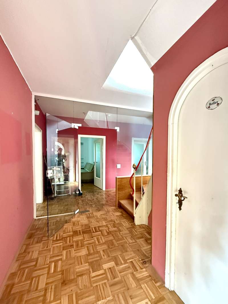 Welcome to one of Regensburg's most sought-after residential areas - nestled in a quiet residential street, this charming detached house with all its facets awaits you. The house is located in the popular district of Kumpfmühl, in an absolutely quiet cul-de-sac that is used exclusively by residents - a real hideaway for families, people in need of peace and quiet or individualists with style. This detached family home with approx. 165 m² of living space and 8 rooms combines charming architecture with materials of lasting value and plenty of potential for individual development. The special character of this property can be felt as soon as you enter the property: a well-kept driveway leads through the beautifully landscaped front garden directly to the garage with electric door. A spacious forecourt offers additional space for another vehicle - convenient, safe and suitable for everyday use. A house with history - and prospects: The detached house was built using solid construction methods and impresses with its clear basic structure and numerous loving details. Stylish old building charm meets partial modernization. The original wooden staircase runs elegantly through all floors, and the high-quality herringbone parquet flooring lends the living area a warm, dignified atmosphere. Important modernization measures have been implemented in recent years - including some new windows with double and triple glazing as well as the addition of a light-flooded conservatory, which adds a very special feel-good zone to the house, and a gas condensing boiler heating system in 2006. Spacious living - with conservatory and terrace: On the first floor, the spacious living room with its warm parquet flooring and expansive window front forms the heart of the house. It is a place for spending time together, for family life, guests and parties - or simply a glass of red wine in a stylish atmosphere. Directly adjacent is the large dining room with its wonderful conservatory - a room that is a wonderful retreat for reading, plants or breakfast in the sun in the morning. The kitchen is functionally equipped - with a well-kept, older fitted kitchen and an adjoining utility room that provides tidiness and storage space. Also on the first floor: a bedroom and a bathroom with shower and natural light - ideal for ground-floor living. Space for everyone - on the upper floor and top floor: The second floor houses two spacious children's bedrooms with views of the countryside - perfect for little adventurers, creative teenagers or as a combination sleeping and play area. A charming master bedroom, another storage room and a south-facing balcony round off this floor. The absolute highlight - the spacious roof terrace. Sunbathing with a view over the garden, dinner under the stars or a glass of wine on a balmy summer evening - this place is made for life's special moments. The top floor offers even more space for living and dreaming: a converted attic studio, a separate guest room and additional storage space under the sloping ceilings await you here. A garden straight out of a picture book - green, ingrown, private: You can also access the sheltered garden area directly from the conservatory. Whether it's a leisurely breakfast outdoors, relaxed reading under a shady tree or an exuberant barbecue evening with friends - the garden offers numerous corners and opportunities to settle down in the greenery. The garden of this house is a real gem - lovingly landscaped, ingrown and with a natural beauty that is second to none. Tall shrubs, mature trees and ornamental plants not only provide privacy, but also create a very special atmosphere. You can immediately sense that this garden invites you to simply feel at home. The covered swimming pool at the back of the garden is particularly noteworthy - nestled between plants and flowerbeds, with space for sun loungers. The roof not only makes it easy to maintain, but also extends the swimming season. Children can splash around safely here and adults can swim their laps in peace and quiet - real added value for all generations. And best of all: despite the quiet location in the middle of the city, you can enjoy absolute privacy here - a little paradise that lets you forget everyday life. Sale by bidding procedure - minimum offer 425,000 euros. Viewing period on Sunday, 05.10.2025 at 11.00 am. Please register in advance for the viewing.