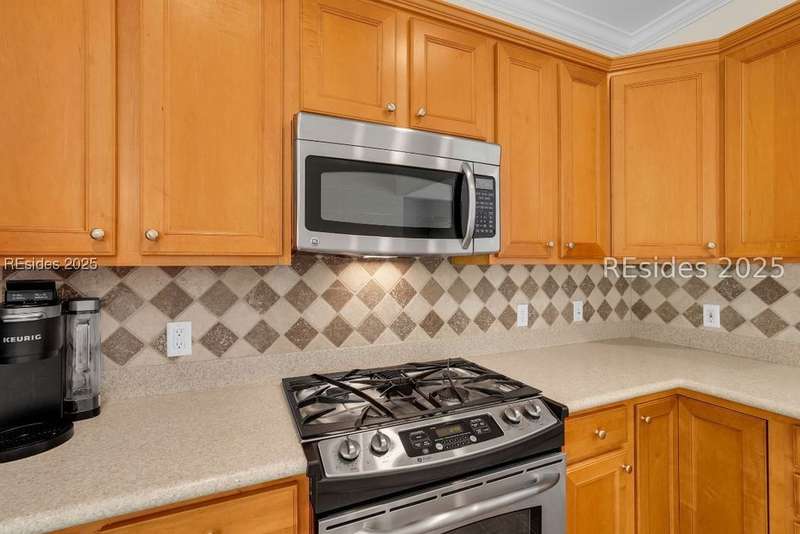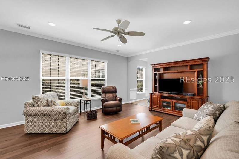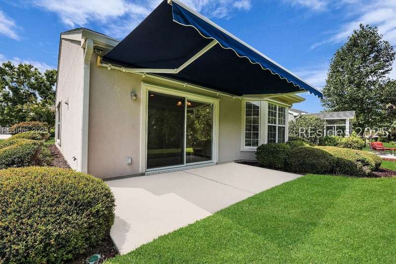 Move-in ready Primrose model with view of natural pond and woods. This well-maintained and gently used 2nd home features 2 bedrooms, 2 bathrooms and a cozy den. LVP flooring and crown molding in living areas. Enjoy the lagoon views from the eat-in kitchen with SS appliances, tile backsplash, Corian countertop, large tile flooring and bar seating. Primary suite has a bay window for extra natural light and views. Crown molding in the Great Room. Remote controlled awning over the patio makes it the perfect place to have your morning coffee and evening beverages while watching the abundance of wildlife. Office/den allows extra space for a home office or a cozy den. Laundry room with extra shelving. Extended garage with pull down stairs for over the garage storage.