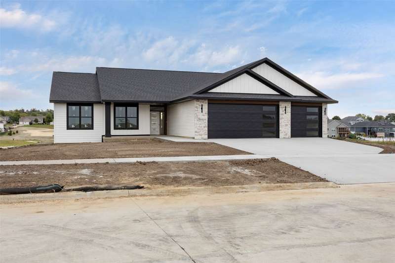 Brand NEW home for the holidays! This incredible walkout ranch has everything you need and more. This zero entry home offers the extras others do not have. With the almost double deep 3rd stall adding the space for a 4th small car And a garden garage in the back! The exterior offers a covered porch, deck AND a large patio!!! Located on an ideal lot backing up to the trail and the new park. Without any other homes going in behind you, the yard is open and feels like an acre lot. Prepare to fall in love with all the extra upgrades inside too! Main floor laundry, mudroom with lockers, walk in pantry, door from kitchen to deck and door from garage to deck, fireplace, 5 bedrooms, 3 full baths with the primary suite offering gorgeous tiled walk in shower and walk in closet. The lower level has a huge rec room, wet bar and walkout to the patio to enjoy the trails and park. Call for your private showing today!