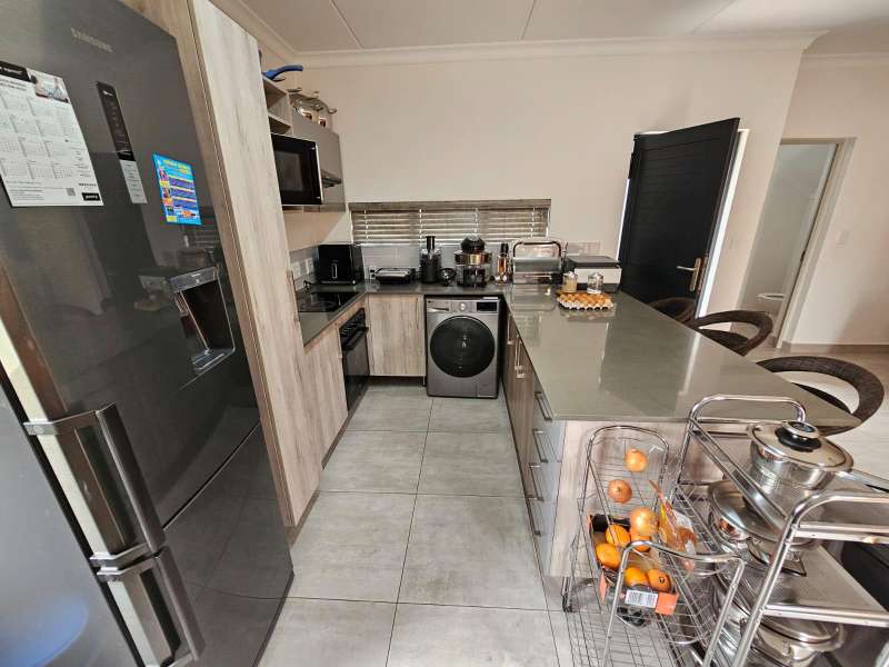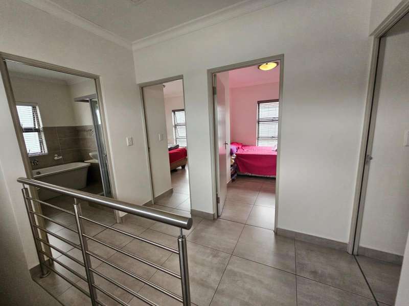 This exceptional home blends contemporary design with comfort, featuring stylish modern tiles throughout and a layout that?ÇÖs perfect for both relaxation and entertaining. Downstairs: Open Plan Living Area: A spacious lounge and dining room create the ideal setting for gatherings and relaxation. Sleek Modern Kitchen: Complete with elegant granite countertops, ample space for a single fridge freezer, room for two under-counter appliances, and a cozy breakfast nook. Guest Convenience: A well-appointed guest toilet for added ease and comfort. Upstairs: Three Generously Sized Bedrooms: Each featuring built-in cupboards for seamless storage and organization. Two Full Bathrooms: Including a luxurious en-suite in the master bedroom. Additional Features: Double Garage: Offering secure parking with automated doors for ease of use. 24-Hour Security: Located in a safe, secure estate with round-the-clock surveillance. High-Speed Connectivity: Fiber optic internet is already installed for your convenience. Energy Efficiency: Equipped with a 5kW inverter and battery, plus a solar geyser to reduce energy costs. Don?ÇÖt miss your chance to own this modern, energy-efficient home?Çöschedule a viewing today! About Thatchfield/Rua Vista: Thatchfield/Rua Vista offers easy access to major routes, including the N14 (Krugersdorp/Lanseria Airport) and the R55 (Kyalami-Pretoria West), making commuting a breeze. Located nearby are: Shopping Centers: Forest Hill City, Mall@Reds, Panorama Center, Rooihuiskraal Center, Centurion Mall, Marylone Mall, Lifestyle Center, and San Ridge Mall. Schools: Curro Thatchfield Private School is within walking distance. Nearby Nursery Schools: Regio Pre-School, Philena Primary School, Little Heffalumps, and Kidz World Nursery School (Centurion). Primary Schools: Walter Sisulu Primary, Rooihuiskraal Primary, and Uitsig Primary. Secondary Schools: Sutherland High School, Centurion Christian School, and Uitsig Secondary School.
