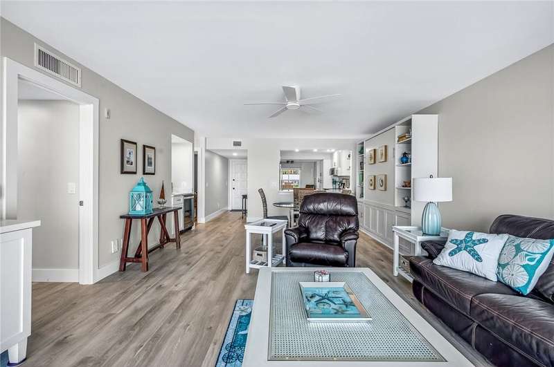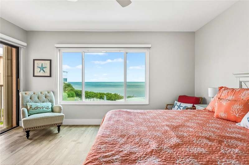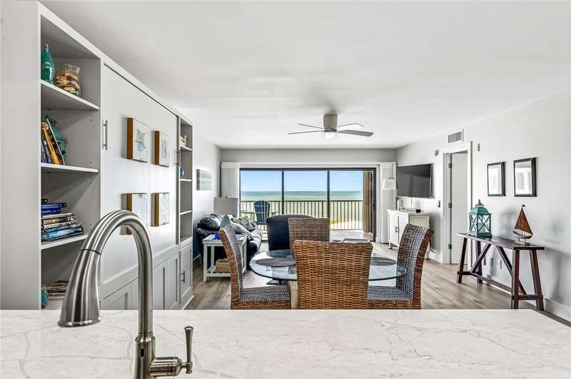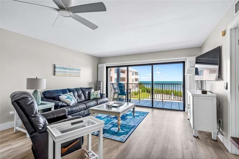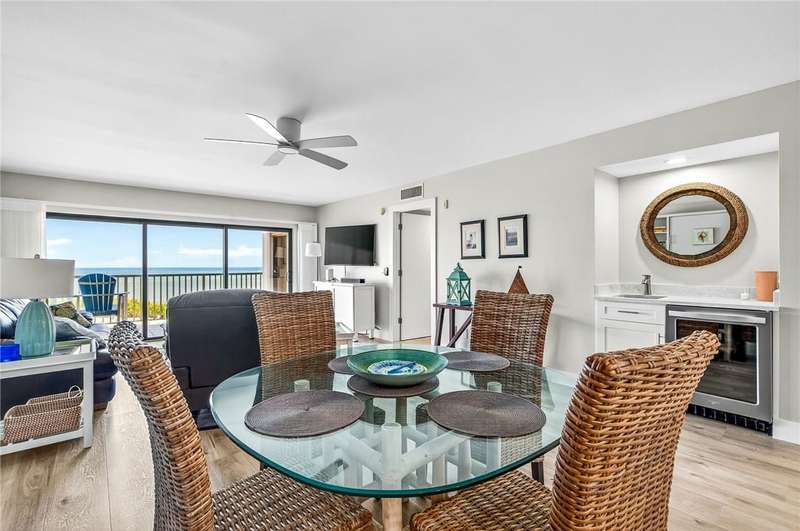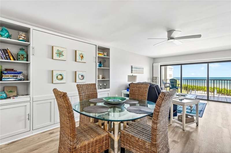 Newly renovated oceanfront 2/2 with magnificent direct ocean sunrise view. Offered turn key for easy enjoyment. Recently fully renovated with all of the desired upgrades. Murphy bed wall unit in dining area for added versatility. Wake up looking at the beach in your new home. Club amenities (required) include dining, tennis, pickleball, community pools, fitness and more for full resort-style Florida living. Sizes are approx/subj to error.