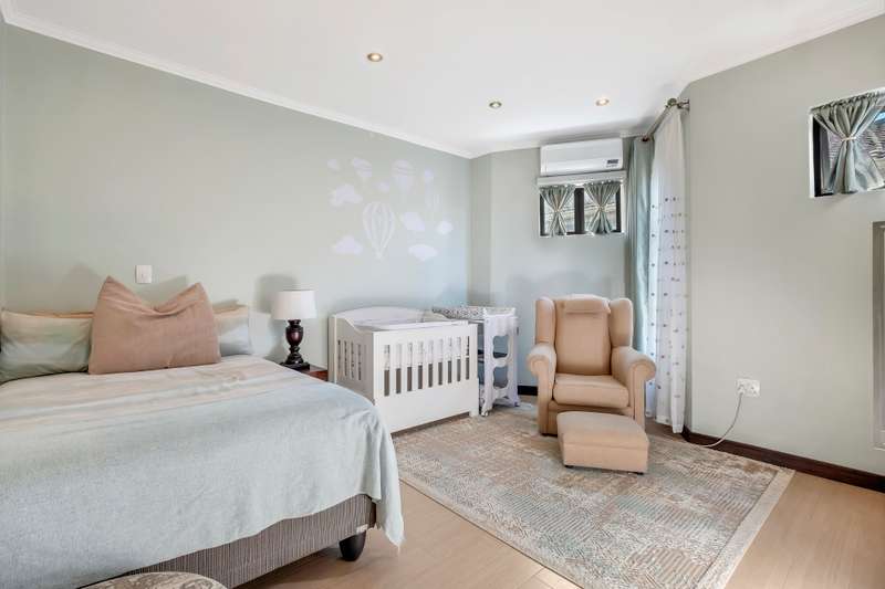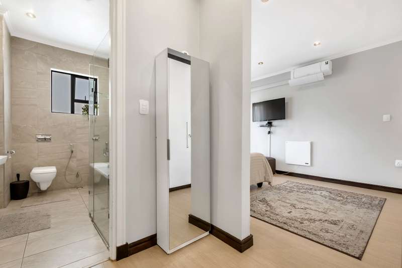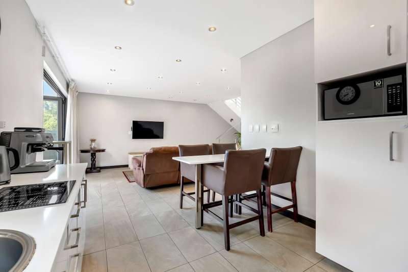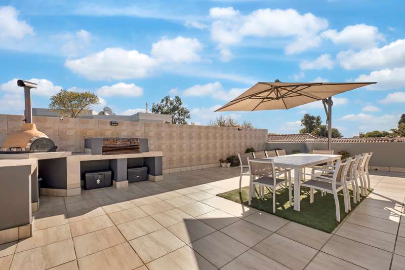 Back Up Power. Back Up Water. Just One Minute from Masjid Safiyyah. This is more than just a home. It is a lifestyle upgrade. Equipped with full solar backup electricity and borehole water, this property offers uninterrupted comfort and peace of mind. The complex is also pet friendly—ask the agent for more details. Located just a one-minute drive to the newly established Masjid Safiyyah, this home is ideal for those seeking both spiritual convenience and everyday practicality. Set within a quiet, tucked-away side street, the complex offers an immediate sense of calm and space. With only seven units surrounding a wide central parking area, it feels open and welcoming. The layout is refreshingly different from anything else in the neighborhood. Step inside and you are greeted by a light-filled open-plan living area that flows into a beautifully appointed kitchen with modern cabinetry and elegant tiling. To the side, a private scullery connects directly to the double garage. This thoughtful layout keeps your main living areas neat and uncluttered. Upstairs you will find three spacious bedrooms, each with air conditioning. The main bedroom includes an en suite bathroom, while the landing has been cleverly transformed into a separate study using drywall—perfect for working from home or quiet reading. At the top of the home is where things get truly special. A rooftop entertainment patio with a built-in braai, a full bathroom, and a comfortable Wendy house currently used as staff accommodation offers a space that is both private and practical. It is ideal for entertaining, relaxing, or simply enjoying the view. From the high ceilings to the immaculate condition, every part of this home has been carefully maintained and intelligently designed. If you are looking for a home that combines modern living with smart features, quiet surroundings, and spiritual convenience, this is the one you have been waiting for.