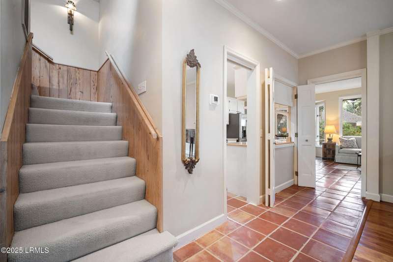 From the moment you arrive, 207 Odingsell welcomes you with its distinctive charm and custom craftsmanship. This exceptional home features a unique, spacious courtyard and stunning marsh views overlooking Jenkins Creek and the Cotton Dike Golf Course offering the perfect blend of luxury and Lowcountry beauty. Inside, an abundance of natural light pours through large windows, illuminating elegant Spanish tile floors that flow throughout most of the main living areas. The open layout moves effortlessly from room to room, leading to a spacious great room designed for comfort and relaxation, all framed by breathtaking panoramic views. The kitchen and breakfast/den area provide an inviting space, complemented by the nearby Carolina Room, where you can unwind while taking in the serene marsh and creek views. The primary bedroom suite shares the same peaceful scenery and is thoughtfully designed for ultimate comfort and tranquility. A connecting bedroom can serve as a second primary suite with its own private bath or as a separate guest room, offering flexible living options. Step outside onto the expansive deck, perfect for entertaining or enjoying your morning coffee as the sun rises over the golf course and Jenkins Creek. Upstairs, a versatile open loft and another spacious guest suite with a private balcony provide additional space to relax and take in the stunning surroundings. Back on the main level, a screened breezeway connects the home to the garage. This versatile area includes a long work shelf and sink, ideal for gardening, crafting, or any hobby you choose. Dataw Island is a private, waterfront community that offers amenities that ensure plenty of fulfillment. Golf, tennis, pickleball, croquet, two swimming pools, docks, and so much more help create opportunities of activity, socializing, and competition. The Morgan River and Jenkins Creek establish an environment that attracts wildlife and forges the most spectacular Lowcountry views. Membership in the Dataw Island Club is required. This material is based upon information, which we consider reliable, but because it has been supplied by third parties, we cannot represent that it is accurate or complete, and it should not be relied upon as such.