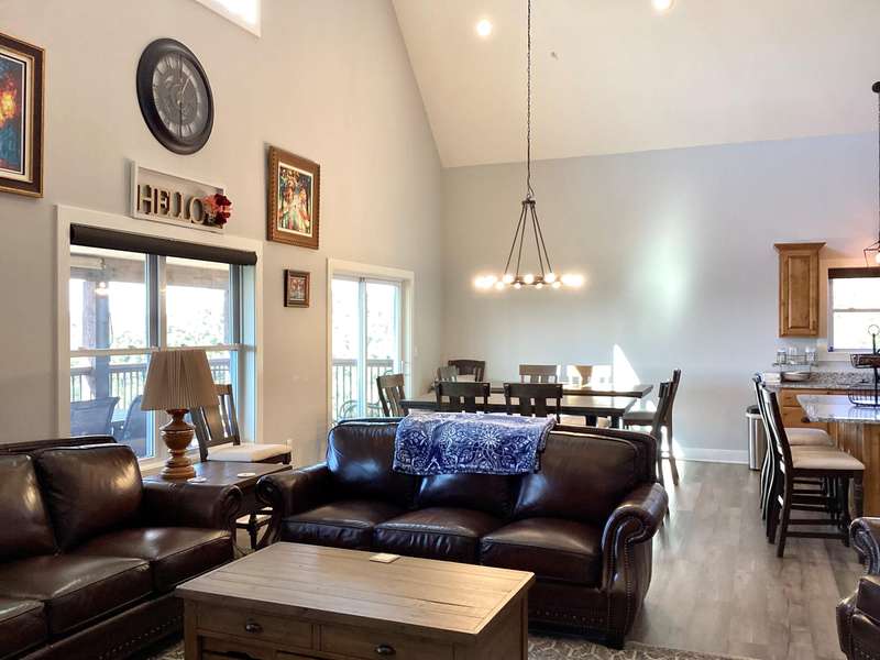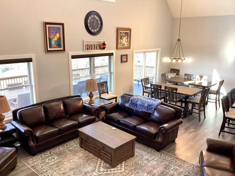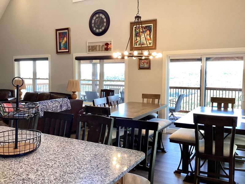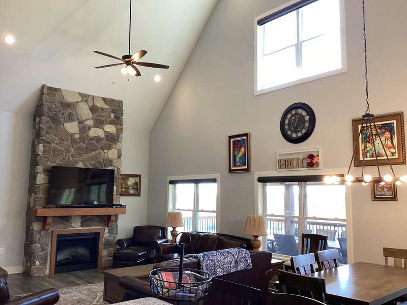 Luxury Lake Home in the Heart of Branson!! Newly built in 2023!! Panoramic Views of Table Rock Lake!! Nightly Rental Approved!! Sleeps 22 people and has 3 levels to enjoy without feeling crowded and 2 large decks overlooking the lake, mountains and Silver Dollar City!! 6 Bedrooms, 6 Full Bathrooms and 2 half bathrooms!! The Open Floor plan, high ceilings, and cozy fireplace in the main living area make it easy for everyone to socialize on vacation!! Full Kitchen and eat in areas are spacious and can seat the whole group!! Upstairs you have a bunk room and recreation space!! Lower level has a small kitchen and additional fireplace and family room and 3 more bedrooms!! The location is right off Indian Pt Rd and the property adjoins Silver Dollar City, you're minutes away from Hwy 76 and only 15 minutes from Branson Landing if you take the High Rd!! The spacious Clubhouse offers indoor and outdoor pools, fitness room, hot tub, conference area/party area, playground, and on-site check in and rental management!! There is a full size marina within a few minutes drive if you love to go boating or fishing. This is a fully furnished home and move in ready!! This one won't last long!!