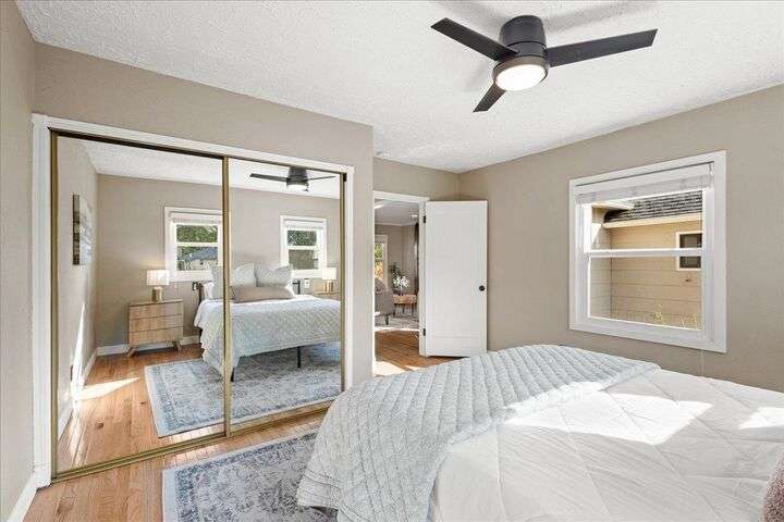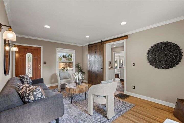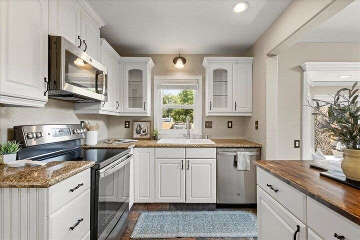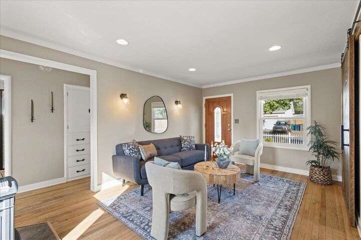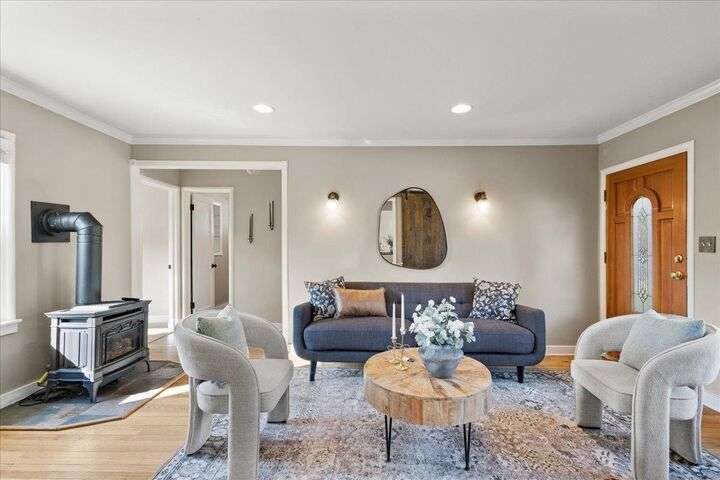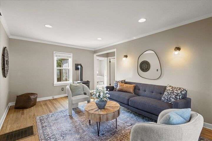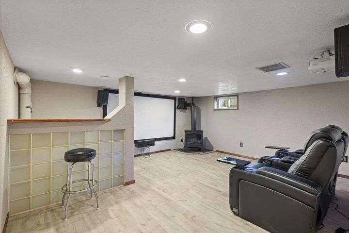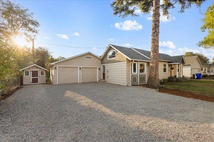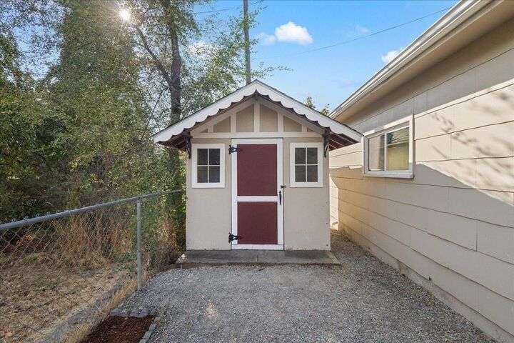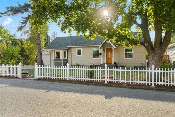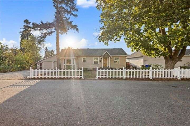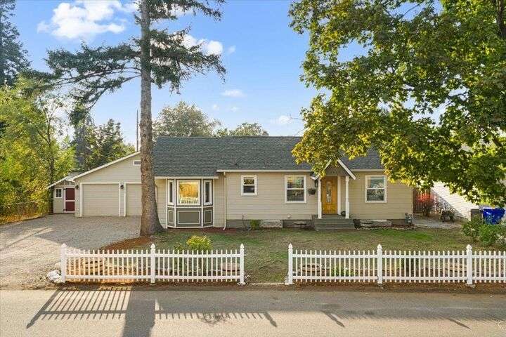 Immaculate 2-Bedroom, 2-Bath Rancher with Multiple Living Areas & Media Room. This well-maintained two-bedroom, two-bath home offers a thoughtful floor plan with both formal and informal living spaces. The main level features a formal living room ideal for entertaining, as well as a comfortable family room for everyday living. The fully finished basement expands the home's functionality with an additional family/media room, complete with a projector screen for theater-style entertainment, a bar, and a dedicated laundry room. Exterior highlights include a double garage, a charming storage shed, and classic white picket fencing that enhances the home's curb appeal. Situated on a .14-acre lot, the property balances low-maintenance living with outdoor enjoyment. Combining timeless charm with modern conveniences, this home is a rare opportunity for buyers seeking comfort, versatility, and character. This home is 2 blocks from the Spokane River.