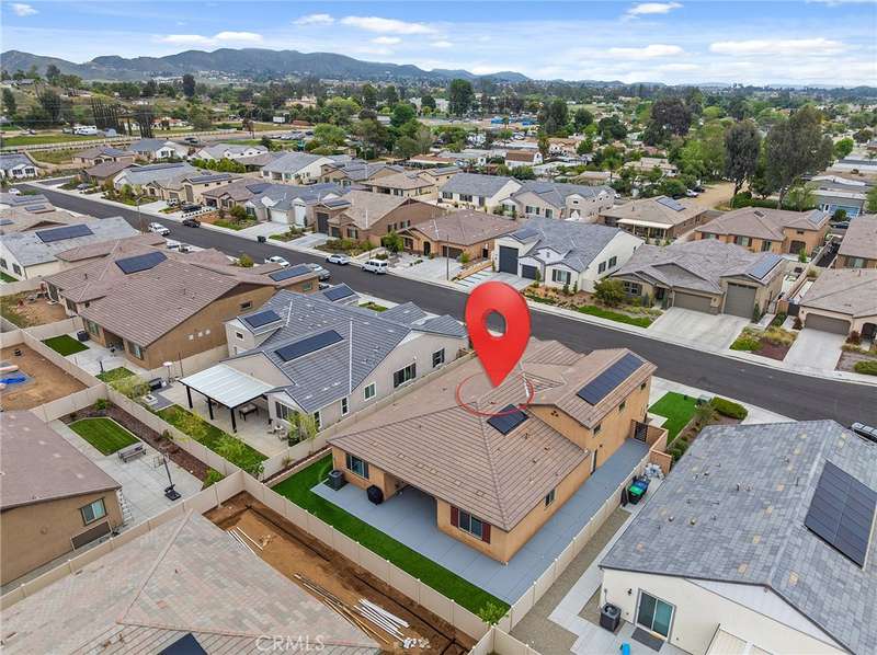 Beautiful 2,445 SQ. FT. Single Story Built in 2022 with LARGE 1,157 SQ FT RV GARAGE & SOLAR Located at The End of CUL-DE-SAC. Plenty of Space for Large Trucks, RV's, Boats and More. The 1,157 SQ FT RV GARAGE Also Includes Custom Built-In Cabinets & Bike Rack, Overhead Storage, Built-In Power Washer and Epoxy Floors. UPGRADED Kitchen w/Maple Cabinets, Granite Counters, Stainless Steel Appliances, Extended Center Island, Refrigerator & WALK-IN PANTRY. The Bright Open Floor Plan Has Family Room Off Kitchen & Dining Room w/Slider Access to Covered California Room Patio, Private Laundry Room w/Washer and Dryer & Mud Room w/Storage. The Beautiful MASTER SUITE Includes Large Private Bedroom & Bathroom w/Soaking Tub, Walk-In Shower & Large Walk-In Closet. The 3 Bedrooms Plus Den (4th Bedroom Option) Are Located on Opposite Side of Home Along w/Private Full Bathroom & Powder Bathroom. The Professionally Designed Front & Backyard Includes LOW MAINTENANCE TURF, Vinyl Fencing, Concrete Patio & Side Yard w/Extra Yard Drainage, Planter w/Drip System. Energy Efficient SOLAR SYSTEM Included w/Low Lease Payments. This Amazing Neighborhood is Conveniently Located Just Minutes to 15 Freeway, Schools, Shopping & Restaurants.