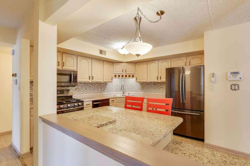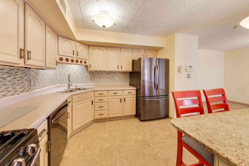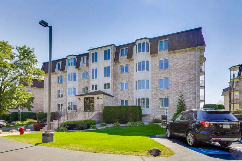 Check out this sunny, spacious, updated, corner unit with lake views in the beautiful 55+ Lakeview Club in Lansing. This 2 bed, 2 bath condo, in an elevator building, has been tastefully updated including kitchen, lighting and flooring updates. Large living room opens up to a sizable balcony with lush views. Kitchen with ample cabinet and counter space including a large island. Both bedrooms are large enough for king beds and dressers, including a primary suite with en-suite bathroom with separate tub and shower. Laundry room with utility sink and shelving. Easy access to multiple parks, golf courses, shopping, and entertainment options.