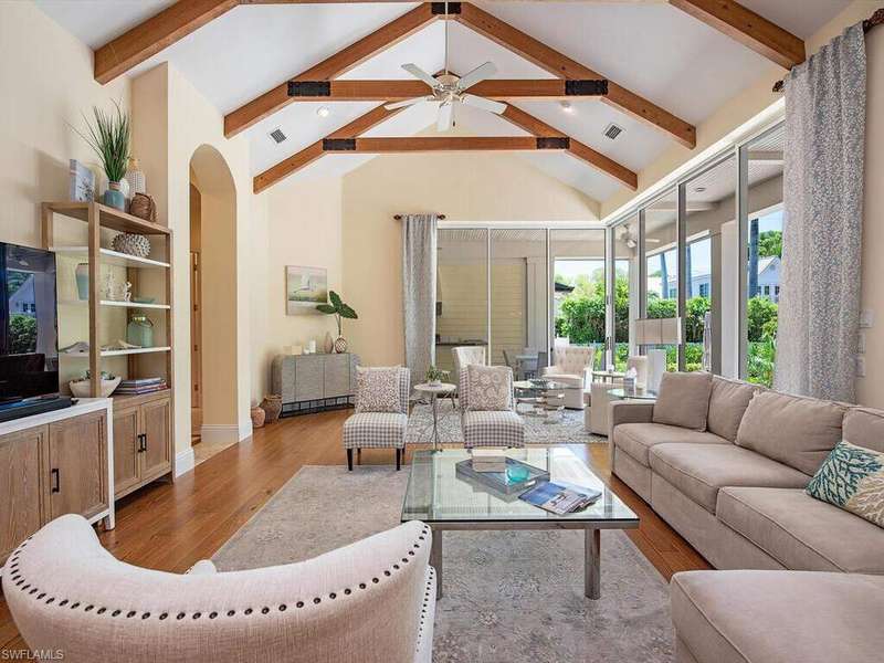 The annual rate is $36,000.00 / month. The advertised rate is for high-season (Nov.-April); longer terms have greater discounted rates. Situated only four houses from Naples' sugar sand beaches on an oversized lot offering the utmost this home represents the quintessential tropical retreat! The residence features Old-Florida architecture, a metal roof, Hardi Plank siding, a front porch, wood floors, and vaulted Cypress beamed ceilings. The seamlessly-flowing floor plan hosts multiple sun-drenched living spaces, a butler's pantry and bar off the formal dining room, four spacious bedrooms plus a study on the main level, as well as three full and one half bathrooms. Located on the second level, a spacious guest suite encompasses a wet bar, full bath, and covered balcony, making it ideal for long-term guests or live-in help. The residence also entails a three car garage with private, paved alley access. The residences ninety-degree sliders opens the family room and kitchen area to a backyard oasis surrounded by lush tropical environs. A well-equipped outdoor kitchen, a natural-stone look pool and spa, as well as plenty of space for sunbathing, make this area the ideal space for entertaining and providing the ultimate Florida lifestyle. When the need for adventure ensues, the highly-anticipated Naples Beach Club / Four Seasons is just seconds away, while the chic boutiques and world class dining of Fifth Avenue South / Third Street South within a few blocks.