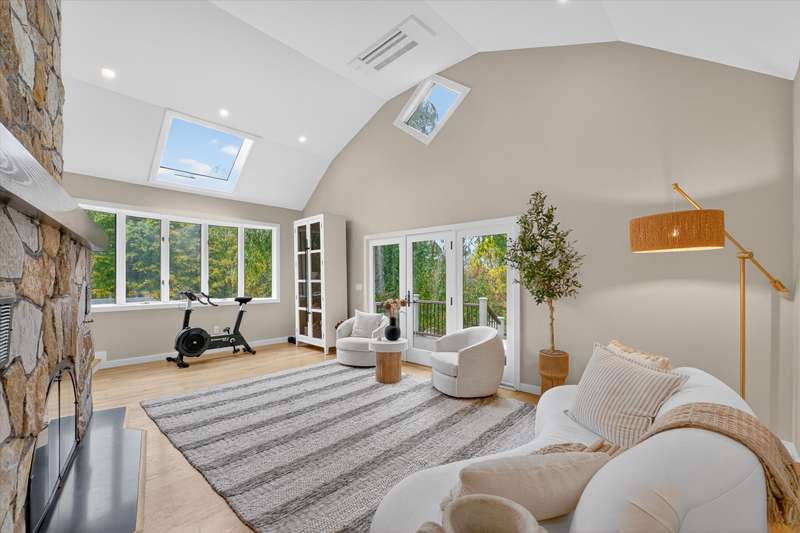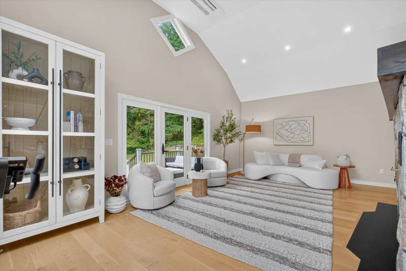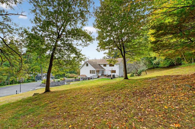 You could be living the dream! Welcome to this magnificent home, set on nearly 2.5 acres of stunning landscape which is available for you to rent! This luxurious contemporary residence showcases superb craftsmanship and high-end finishes that will leave you in awe. The striking modern design harmoniously blends with nature, this property promises an extraordinary living experience.As you step through the door, be prepared to be enchanted by soaring ceilings, recessed lighting and exposed wooden beams. Every corner of this impressive home reflects meticulous attention to detail. Boasting 4 bedrooms and 3.5 baths, including a coveted first-floor primary suite, this home perfectly balances space and privacy for you and your nearest and dearest.Custom closet systems help you to elevate your organization game. The spacious living area, centered around a stone, wood-burning fireplace, invites you to gather and create cherished memories during those chilly evenings.Your outdoor oasis is just as captivating. The stone patio is an entertainer's dream, ideal for hosting guests, enjoying al fresco dining, or simply soaking in the tranquility of your private retreat. Both upper and lower decks offer breathtaking views, making relaxation an absolute delight.Culinary enthusiasts will fall in love with the chef's eat-in kitchen, featuring a stunning center island, marble backsplash, ample storage and a convenient bar area. Whether hosting a formal dinner in the dining room or sliding open the doors for a seamless transition to the patio, every meal welcomes a celebration.Venture down to the fully finished walk-out basementa versatile space brimming with potential! Complete with a game room, full bath, bedroom and a spacious family room, its perfect for entertaining with a room perfect for setting up a home theater.But wait, there's more! This property also includes a charming barn, providing extra space for hobbies or storage, bringing endless possibilities to life. This space is currently being used as a gym and the equipment will be left for you to use at your leisure. Nestled in a desirable location, youll enjoy the peace and quiet of expansive grounds along with the convenience of nearby shopping, dining, and entertainment. An hours commute to NYC, yet you feel like you are in your own private enclave.