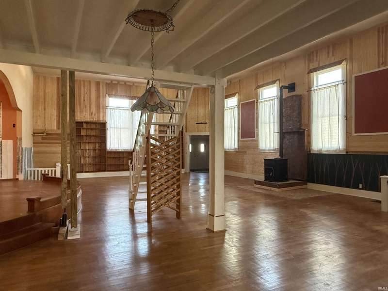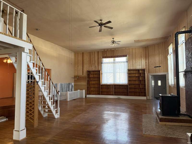 Discover endless possibilities with this unique historic property, perfectly zoned for both residential and business use. Originally a church, it has been thoughtfully converted into a charming home featuring 3 bedrooms, 1 bathroom, and a spacious, updated kitchen. The open living area showcases original hardwood floors, built-in bookcases, and a loft that adds extra character and versatility. Enjoy the outdoors from the covered porch overlooking the back yard. Recent updates include a new furnace and A/C (2022), new carpet in the bedrooms, and new flooring in the office.
