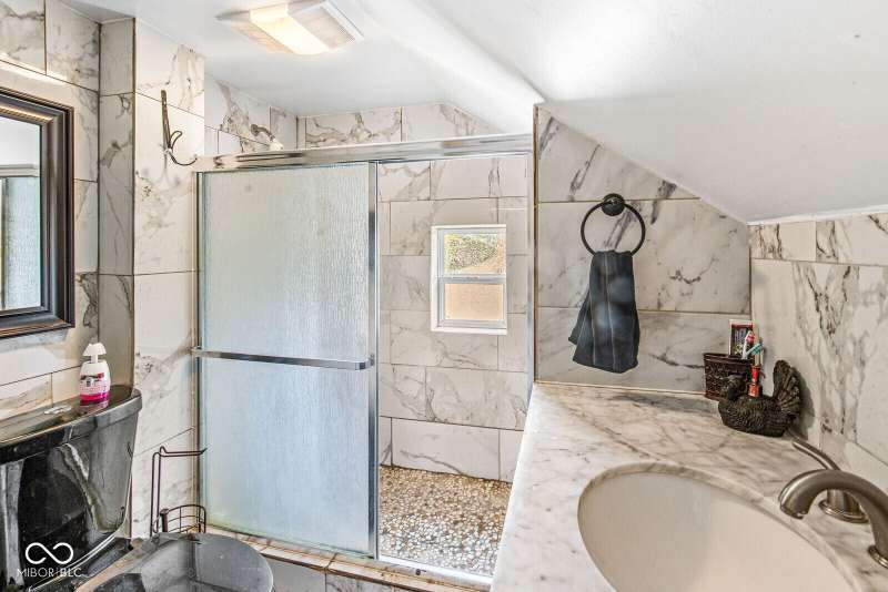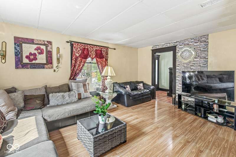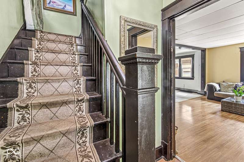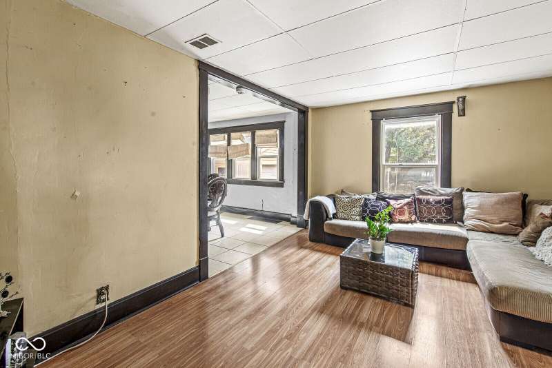 Nestled in the heart of Indianapolis, this single-family residence offers an inviting home, ready to move in. The kitchen features cabinets accentuated by crown molding, and a backsplash that adds a touch of elegance. The bathroom is a sanctuary of relaxation, featuring a tiled walk in shower. Crown molding also graces one of the bedrooms, adding a refined touch to this personal space. Imagine mornings spent in the sunroom/front porch, bathed in natural light. The fenced backyard offers a private outdoor space. The laundry room adds convenience to daily life. This two-story residence, with basement, presents a unique opportunity to own a piece of Indianapolis history. Two bonus rooms in the finished basement, 1 car detached garage, separate dining room and half bath on main floor are some other great features of this home.