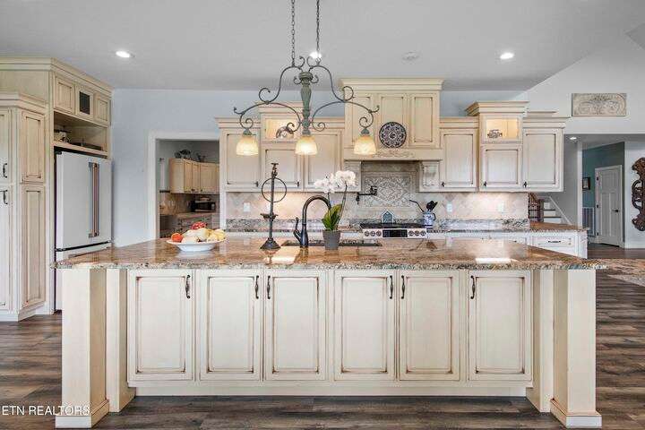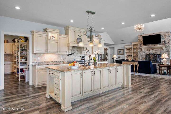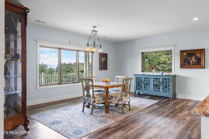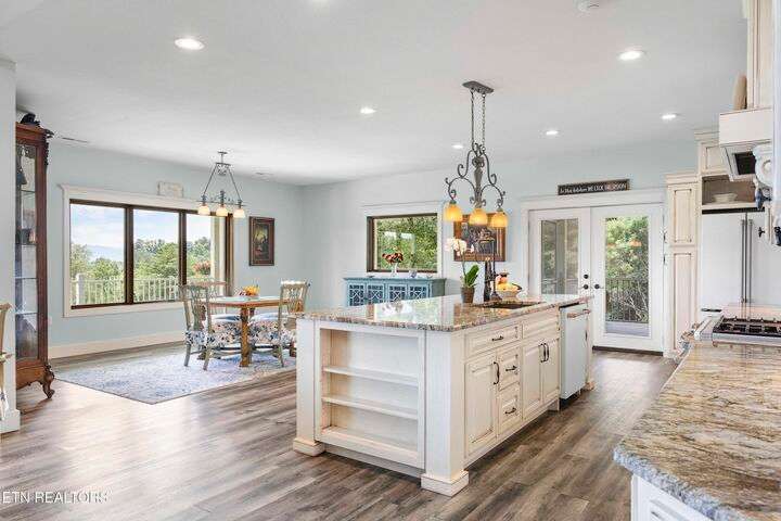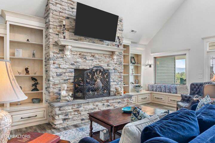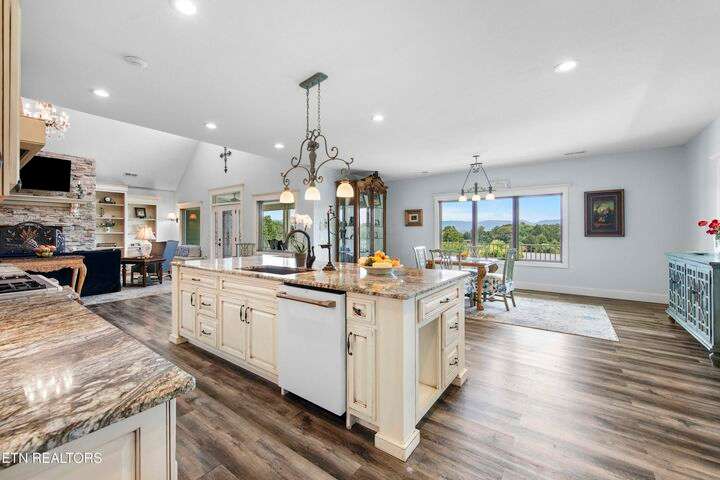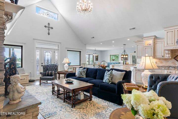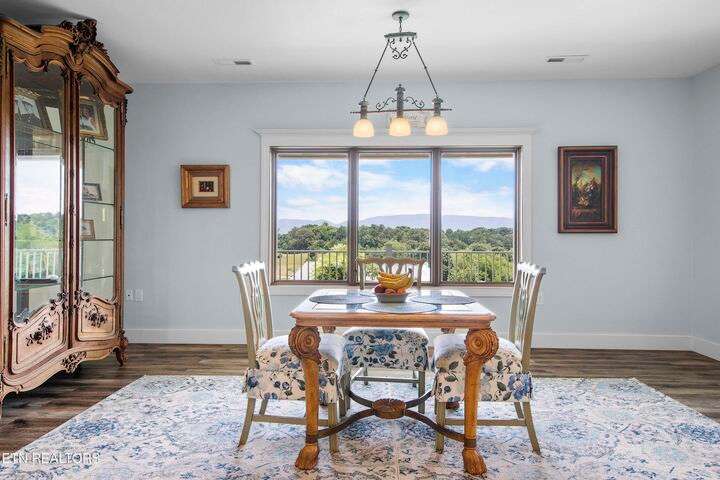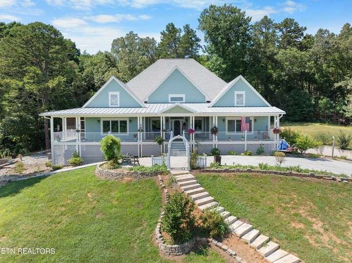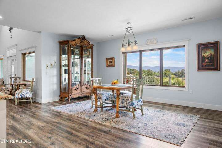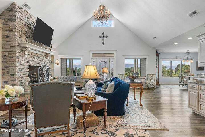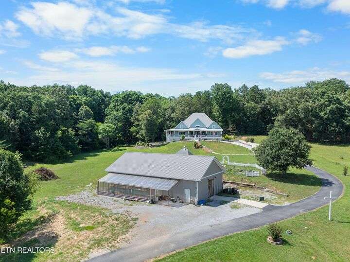 Luxury Smoky Mountain Estate with Unmatched Views and Amenities Discover a one-of-a-kind luxury estate nestled in the heart of the Smoky Mountains. This exceptional property sits on 6.5 private acres, offering breathtaking, panoramic views of the Smokies from nearly every vantage point. Designed for both comfort and grandeur, the four-bedroom, five-and-a-half-bath residence features soaring ceilings, refined finishes, and an open-concept chef's kitchen complete with high-end appliances, an oversized pantry with additional sink and counter space, and abundant storage. Entertain with ease in the private theater room, boasting a 150-inch screen and stadium-style seating for up to 20 guests. Enjoy evenings in the screened-in dining area overlooking the mountains, or unwind on the expansive wraparound porch. The main level includes three bedrooms, perfect for seamless single-level living, while the fully appointed in-law suite in the basement offers its own kitchen, private entrance, and room for multigenerational living. A safe room and space for a future elevator provide additional security and convenience. For car enthusiasts, the property features a four-car garage plus a 40x60 barn, ideal for additional vehicles, toys, or storage. Outdoors, a hardscaped patio with fireplace and water feature, a pond with a walking trail, and meticulously designed landscaping create a serene mountain retreat. Property Highlights: • 4 Bedrooms | 5.5 Baths | In-Law Suite • 150-Inch Private Theater | Seats 20 • Chef's Kitchen | Oversized Pantry with Sink • 4-Car Garage + 40x60 Barn • 6.5 Acres | Pond | Walking Trails • Hardscape Patio with Fireplace & Water Feature • Screened-In Dining Area with Mountain Views • Potential Elevator Access | Safe Room This is more than a home—it's a legacy mountain estate designed for refined living, entertaining, and enjoying the best of East Tennessee's natural beauty.