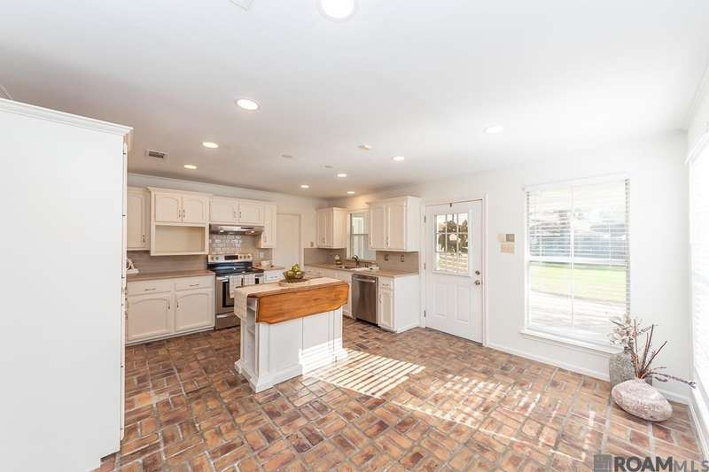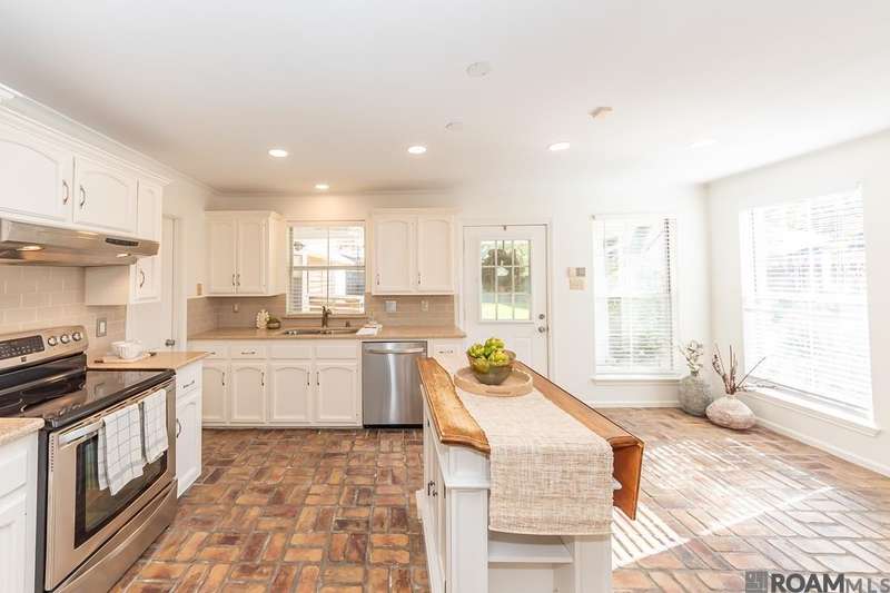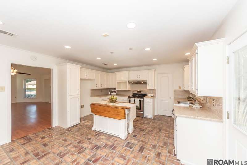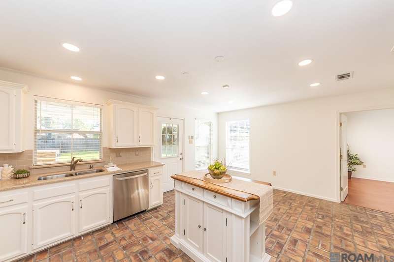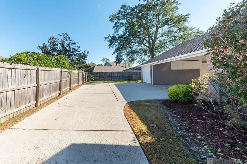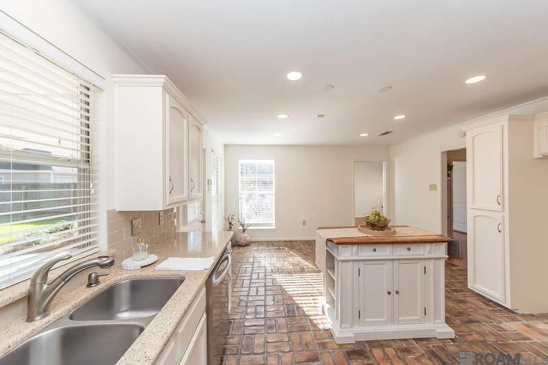 Beautiful, well-maintained home in a great location and neighborhood! Upon entering this charming 3BR/2BA home and you will first find an oversized living room with soaring ceiling, cozy fireplace and TONS of natural daylight. Kitchen features slab granite countertops, separate moveable island and window sink, along with breakfast area with large windows. Adjacent to living room and kitchen is a formal dining room that could also be used as an office or playroom. So much space here! Primary bedroom features an en suite bath with double sinks, separate tub and shower, and oversized walk-around closet with two entrances. Primary bathroom also with access to utility room and laundry. Large backyard is a sweet spot with a covered patio for enjoying outside. Attached carport and storage room/workshop also out back. Automatic driveway gate for security and privacy. Wood privacy fence on three sides as well. New AC and water heater in 2022. Home is convenient to restaurants, shopping and both interstates 10 and 12. Flood Zone X and does not require flood insurance! This precious home is in excellent condition. Don't miss out on this one!