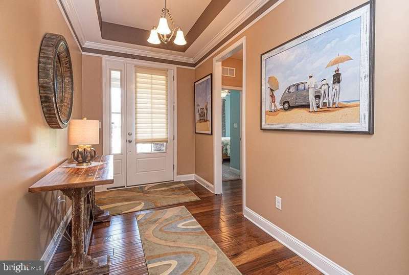 Welcome to the amenity rich community of Bishop's Landing! This community offers 3 swimming pools, 2 clubhouses both with fitness centers, tennis/ pickleball counts, dog parks, a shuttle to the beach, a basketball court and more! If you are looking for an active community, this is where you want to be! This home offers 3 bedrooms, 2 baths all on one level! At just about 2000sq ft, this home offers an open concept and is beautifully maintained by the seller. As you walk through the foyer you will come to the large guest rooms both with new carpet and custom paint. The living room, kitchen/ dining area offers a great space for entertaining. The kitchen offers a double wall oven, cooktop, granite countertops, a tiled backsplash and wide plank hardwood flooring. Cozy up to the gas fireplace in the living area with stacked stone to the ceiling. Off of the dining area, you will walk out the rear door to enjoy the covered porch and extensive paver patio. The hot tub on the patio is included with the home along with an outdoor shower to rinse off after those beach days! Recent updates include new HVAC 5 years ago, a mini split HVAC unit installed in the garage along with cabinets, counter and sink, new carpet in all of the bedrooms, epoxy on the garage flooring, and the exterior trim was all just painted in June 2025.