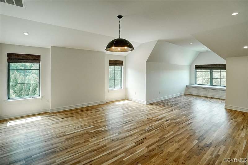 Exceptional James River views from this magnificent custom home built in 2020 by Dunkum Inc. and designed by Ensminger Architecture. Privately situated within the gated community of Pembroke on the James on the historic River Road byway close to Collegiate School, Benedictine Academy and Saint Gertrude High School. The home is appointed with DaVinci shingles, five fireplaces and a stone and brick exterior poised on a high bluff overlooking the James River. Ideally designed for a multi-generational family with private bedroom suites for everyone plus a river view private apartment with a fully equipped kitchen and living room. Key benefits include a three car garage for the main level plus a three car garage in the basement level plus a tractor garage, an elevator, a security vault, a Lutron lighting system, Geothermal heating and cooling for energy efficiency, automatic generator, outdoor lighting, irrigation system and gas lanterns. The living room is stunning with its incredible views, cathedral beamed ceiling, floor-to-ceiling stone fireplace and built-in cabinets and bookcases. The dining room with river views is open to the living room and kitchen. The fabulous marble kitchen is accented with natural wood beams and is equipped with a Wolf range, steam oven, coffee system, Sub-Zero refrigerator and freezer, Cove dishwashers and a pot filler faucet. The kitchen connects to the screened porch with the La Cantina folding door system maximizing your connection to the outdoors. In addition, expand your entertaining to the rear IPE decking with a floor-to-ceiling wood-burning stone fireplace with vaulted porch ceiling. The luxurious primary suite has a stone fireplace, a pair of closets and a marble luxury bath. A first floor bedroom suite plus private study complete the first level. Upstairs you'l find two living areas plus two more family suites. The lower level boats a family room with bar and stone fireplace, a recreation room, media room, gym and office with full bath. James River access.
