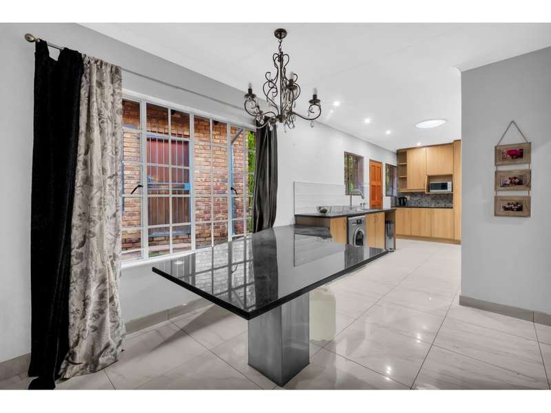 Step into this elegant abode, perfectly nestled in a popular location. As you enter, you are greeted by a grand front entrance open plan onto a formal lounge and dining. Tailor-made for hosting intimate family dinners. The generously proportioned kitchen beckons, providing ample cupboard space and modern finishes such as granite counter tops and a gas stove. Step outside to a lush garden space and sparkling pool and oasis for both sun-seekers and gracious hosts alike. The sprawling garden offers boundless outdoor opportunities, catering to furry friends and loved ones, as well as a thatch lapar for entertainment. Adding to the allure, a large outside room that offers cottage potential or extra living space. For those with vehicles, a double garage ensures both convenience and ample parking options. Price negotiable.