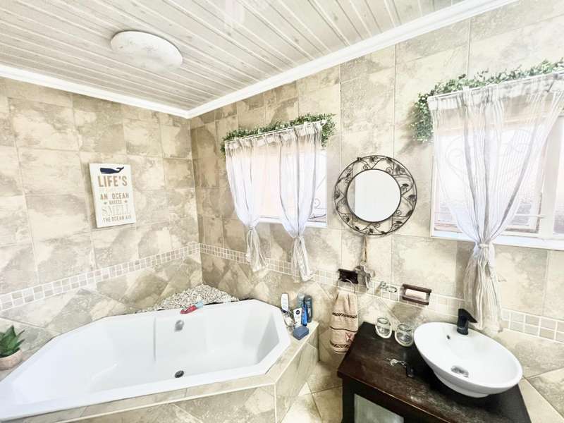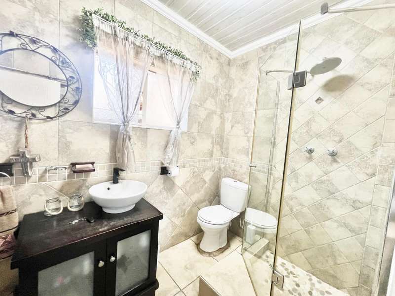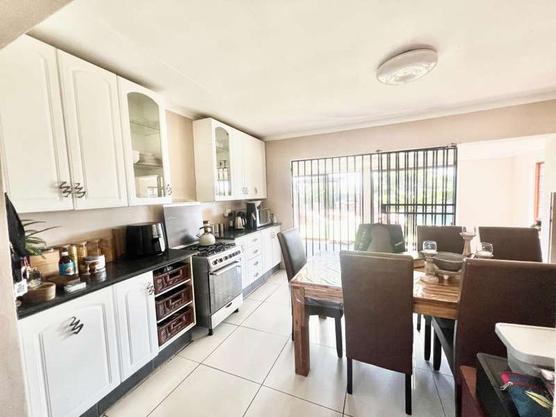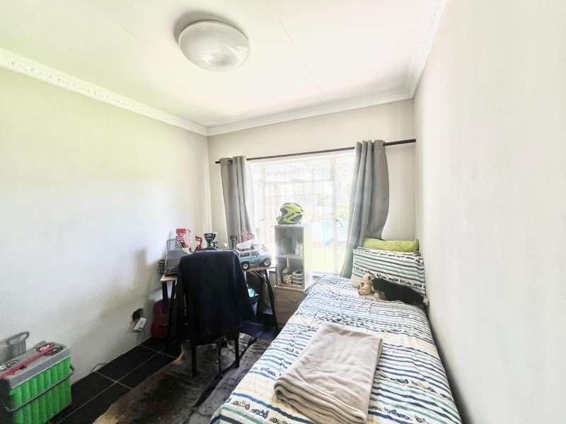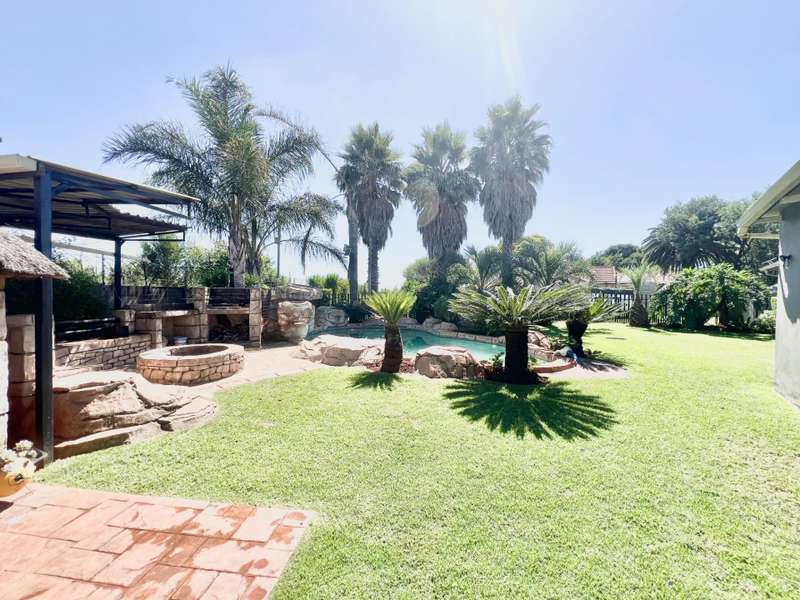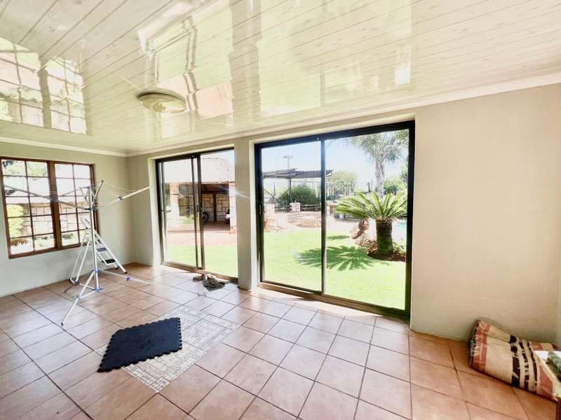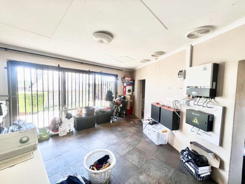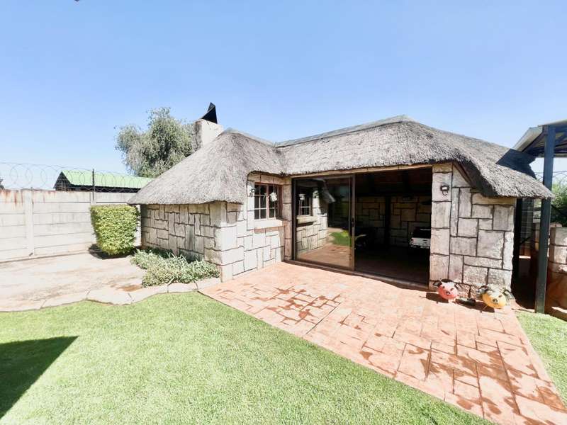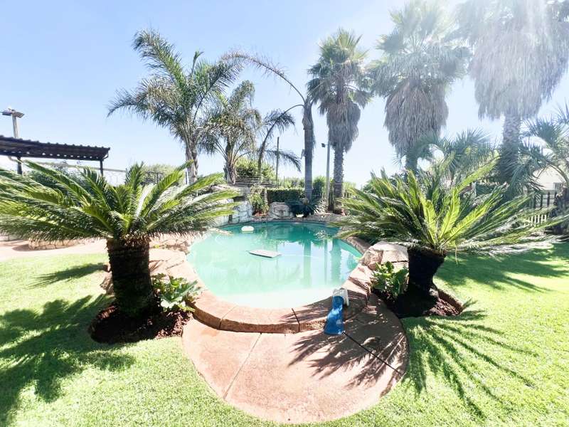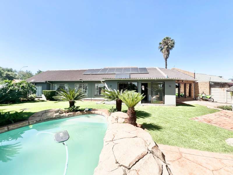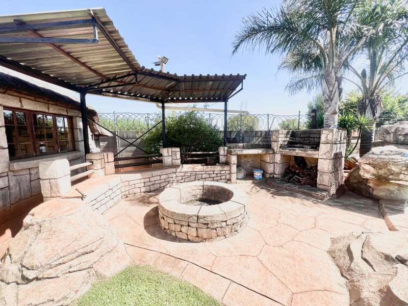 A stunning 3 Bedroom Family home, with a, stunning Garden and Lapa space. That is not all this property is 90% off the grid This well maintained property offers the below: 3 Bedrooms all tiled and full built in cupboards 2 full modern bathrooms, which the master bed bathroom has a solar geyser Spacious lounge with a fireplace Guest Toilet Scullery and Laundry area Kitchen & Dining area are open plan A study and a patio for those early morning coffees. Ouside the garden is well landscaped with a stunning rock art pool, a full boma area with seating. The lapa is fitted with a built in braai and bar area. This property fits everything to keep a family happy and safe. Additional features Borehole and 2570lt Jojo Tank Electric Fence Prepaid Electricity 9 Solar Panels and 2 Lithium Batteries Alarm System 4 CCTV Cameras Give us a call today to view this stunner