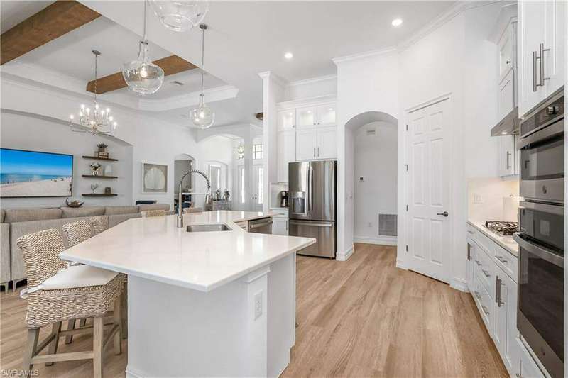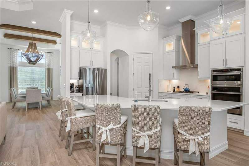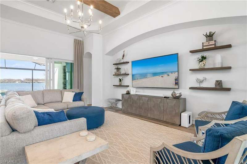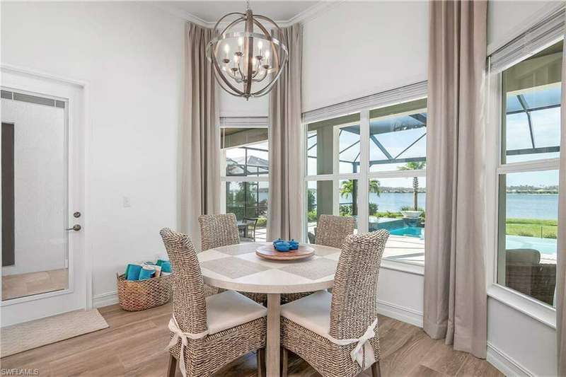 LAKEFRONT LUXURY LIVING!!! Nestled amongst beautiful waterfront residences in a pristine setting in VISTA WILDBLUE. SOUTH WESTERN EXPOSURE WITH MESMERIZING SUNSET VIEW. This home offers plenty of natural light throughout its open layout. Special highlights of the home include four bedrooms, three full baths, gracious gourmet kitchen, large and inviting living room ideal for entertaining with enchanting water views, beautiful tile floors, luxury Bernhardt and Sam Moore brand furnishing throughout the whole house. The spacious patio/pool area that can be enjoyed with friends and family while cooking in fully equipped outdoor kitchen. Fishing lovers can enjoy fishing pier all around the lake. Near some of the finest shopping, trendy art galleries and fine dining in all of Estero, Bonita and old Naples. Enjoy taking a short drive to the beaches and watch the sunset from renowned Naples Pier. Your comfort is assured by renting this serene and grand property!!!