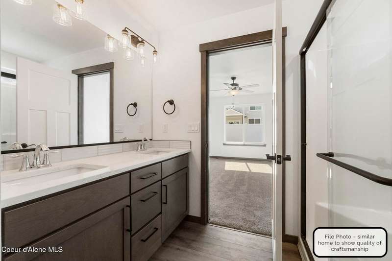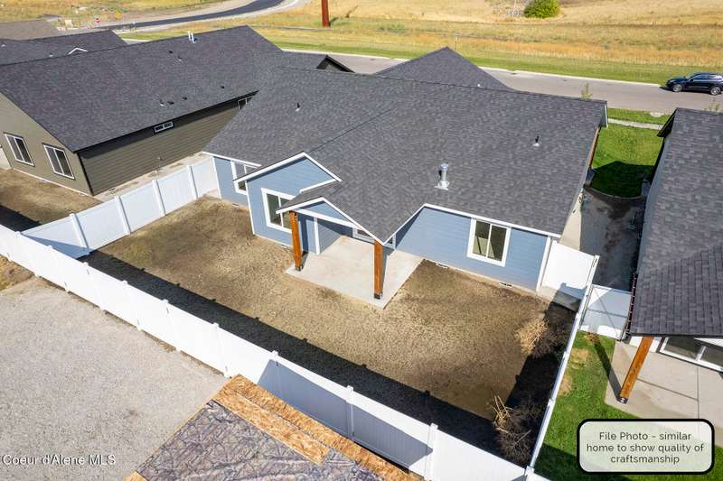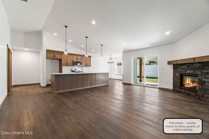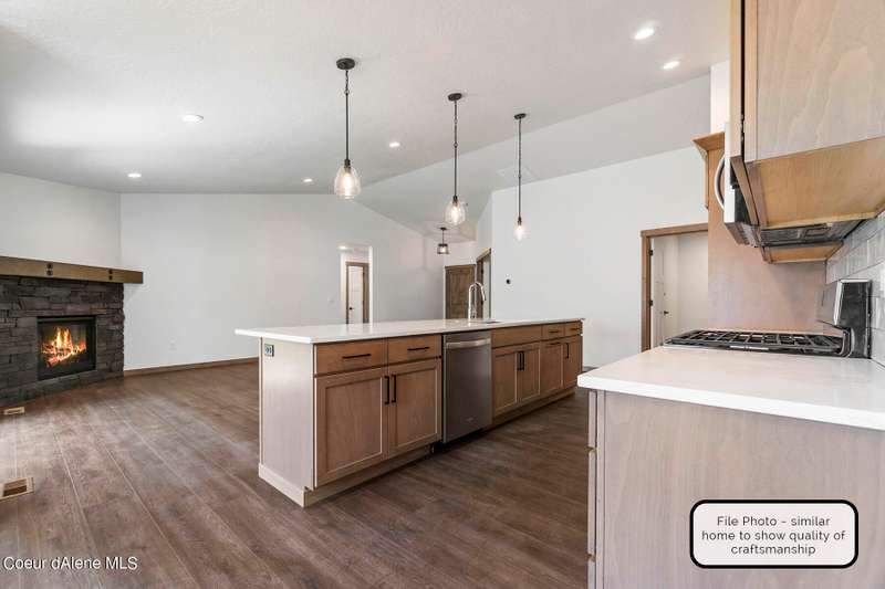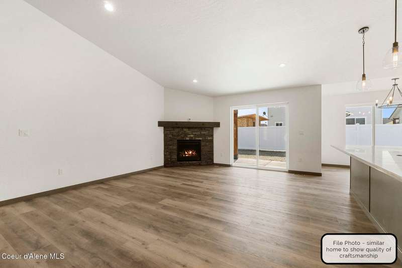 Gas fireplace, 3 car garage, quartz countertops throughout, covered front and rear patio, vaulted ceilings, 95% gas furnace, Nest thermostat, tankless gas water heater, gas to rear patio, gas range, LVP flooring every where except bedrooms and closets, garage door opener, garage man door and front yard landscaping and sprinkler system. Additional lots and floor plans available!