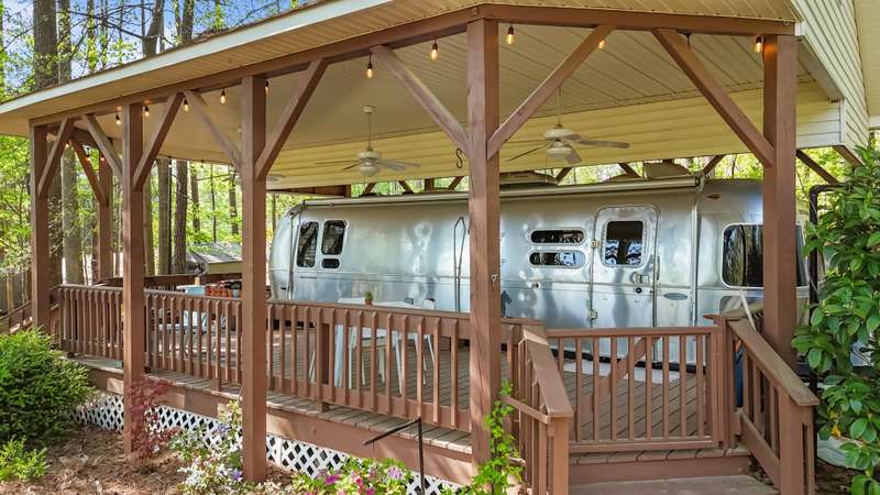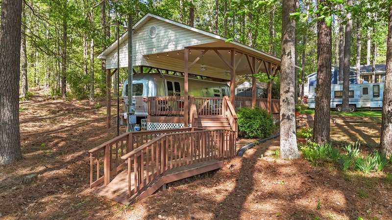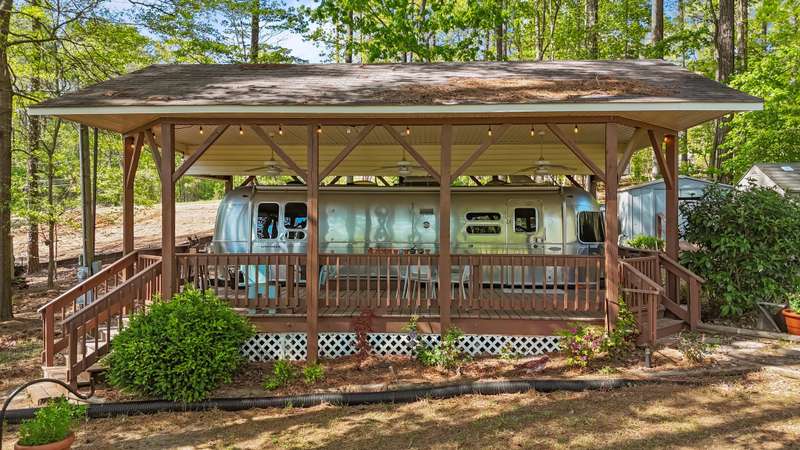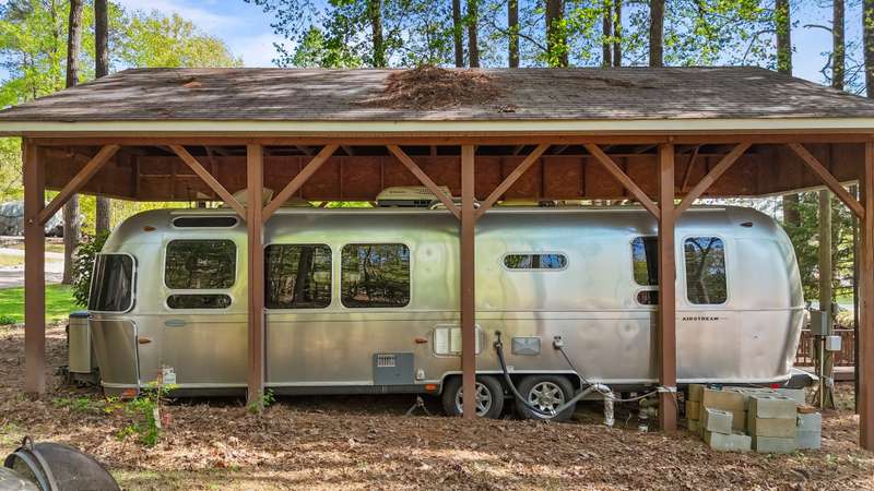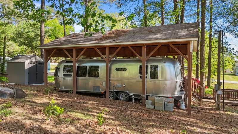 FINANCING AVAILABLE!!GREAT WEEKEND GET-AWAY AT BEAUTIFUL LAKE ROYALE! 2014 Airstream Flying Cloud Series RV Nicely Situated Under Build-Over With A View! Comfortable Bedroom and Bath w/Peek of the Lake From This Double Lot w/Full Utilities Including Septic! Three Storage Buildings Also Included At This Great Price! Washer/Dryer Combo & Fridge Included! Convenient to Pool and Boat Dock! GATED COMMUNITY ON 345-ACRE LAKE W/18-HOLE GOLF AVAILABLE! TWO GOLF MEMBERSHIPS INCLUDED!