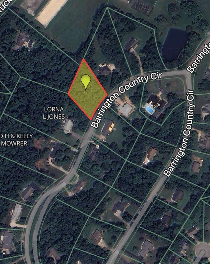 This beautiful lot is a rare find in the established neighborhood of Barrington Country Estates. This .90-acre lot boasts a serene wooded setting, offering privacy and tranquility. Don't miss this opportunity to build your dream home in this coveted location.Septic permit as been granted. Buyer is to verify any and all information they deem to be important, including but not limited to . ft., school zone, restrictions, lot lines, acreage, flood zone, etc