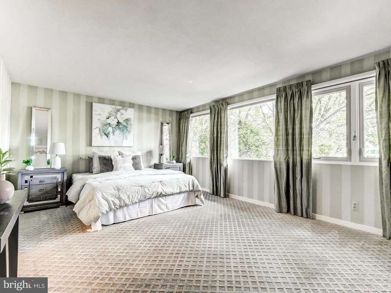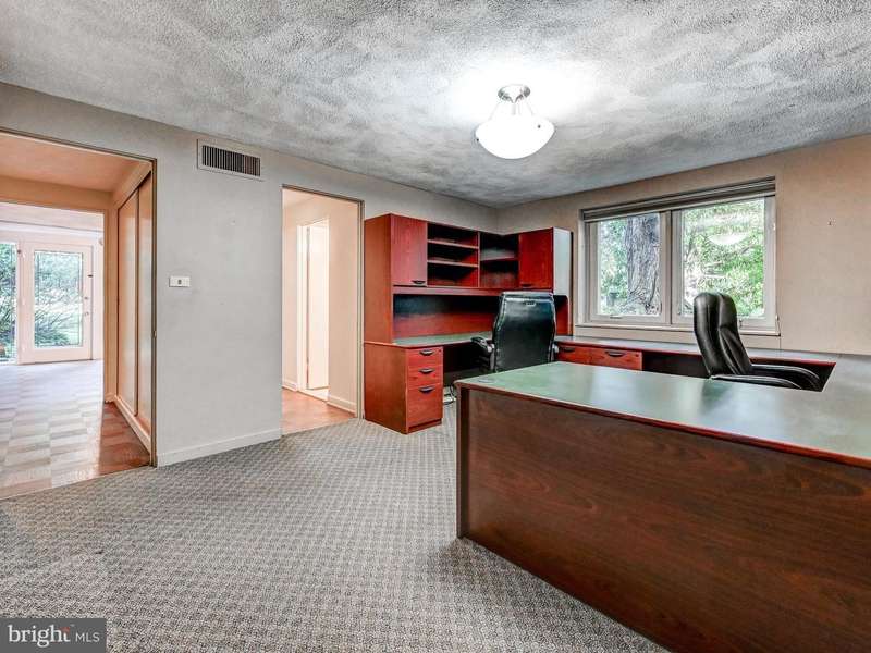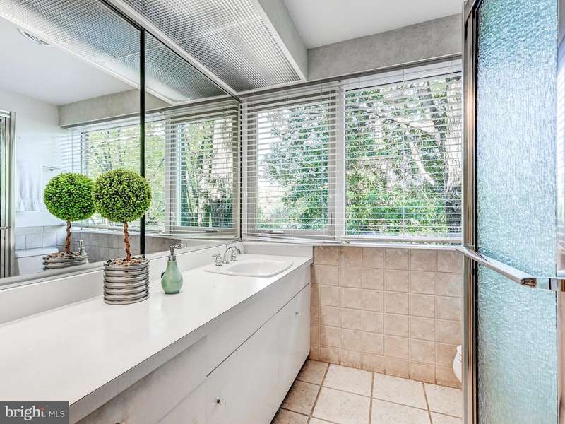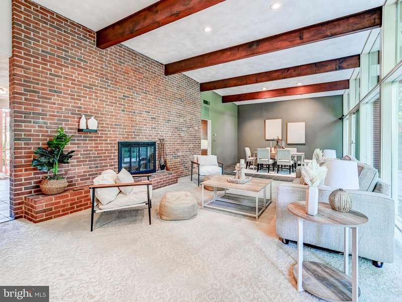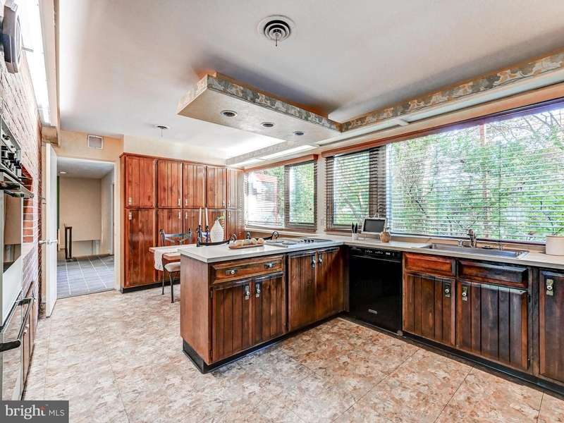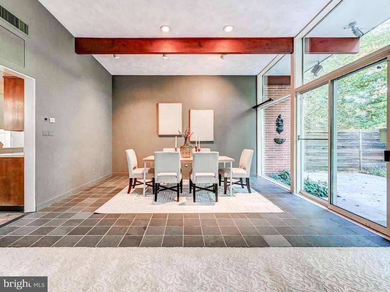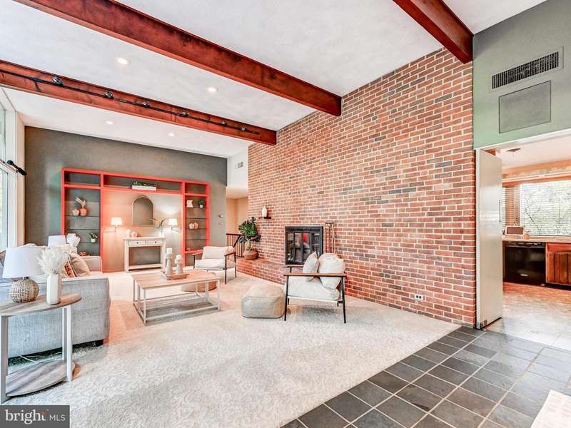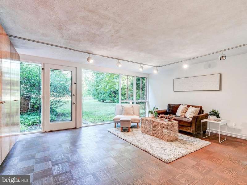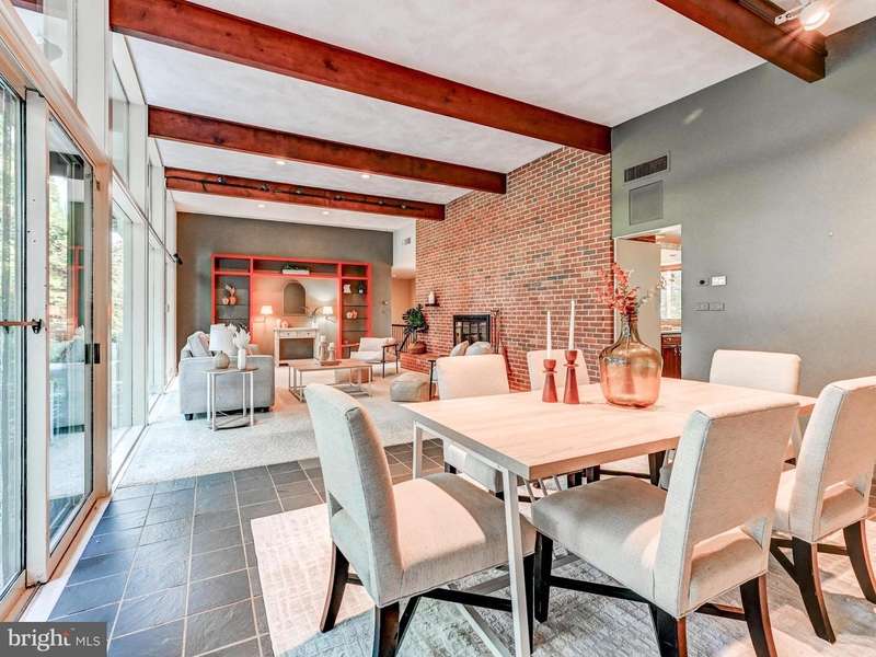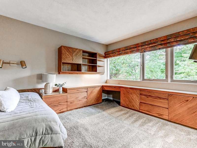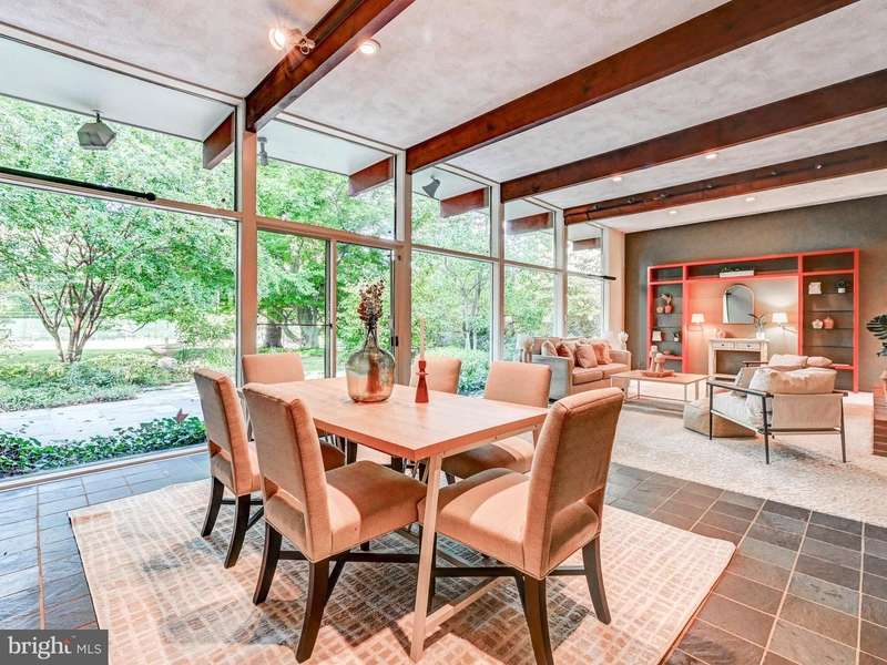 Enjoy easy living in this striking sprawling mid-century modern home with 2 car attached garage on one of the largest corner lots (.97 acres) in the neighborhood. The sun drenched living room & dining room has expansive walls of glass, high beamed ceilings & a brick floor to ceiling fireplace. The eat-in kitchen offers abundant cabinetry, double wall ovens & a convenient main level laundry room. The spacious primary suite features multiple closets & an updated bath with tiled shower. Two additional bedrooms & another full bath complete this level. The bright walkout lower level has lots of windows & includes a large family room with door to rear yard, 4th bedroom currently used as an office & another full bath. A large storage shed provides space for extra storage. The serene parklike rear yard is a wow! There is also an irrigation system & fountain, 3 zones heat & AC replaced 2025. Don't miss this one!
