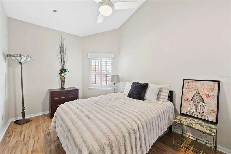 Heart of South Tampa Living! One of largest updated 2 bedroom, 2 full bathroom units at Mallory Square. The unit has been updated throughout and is located on the third floor. This bright unit has large windows and the vaulted ceiling makes the unit feel even larger. There is brand new luxury vinyl flooring throughout the main living area and laminate flooring in the bedrooms. The kitchen offers stainless steel appliances, including range, built-in microwave, refrigerator, and dishwasher. In addition, there is plenty of cabinets for storage and counter space for preparing your favorite meal. The dining room opens up to a private balcony with a storage closet and over looks the pool below. The spacious primary suite features a large walk-in closet and ensuite bathroom. The community is in great school district and close to shops, restaurants, and the Tampa airport. HVAC is 2025. Don't Miss this Opportunity!