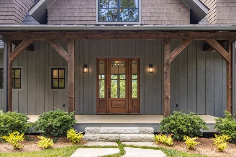 Set on 2.3 gentle acres just minutes from the pristine Lake Glenville, this stunning new construction offers an elegant mountain retreat designed to capture sweeping views of the Western North Carolina landscape. The three-bedroom home, thoughtfully planned over two levels, welcomes you with a grand great room featuring a soaring two-story vaulted ceiling and an expansive porch. Both spaces are anchored by inviting fireplaces, perfect for enjoying the crisp mountain evenings. The open-concept kitchen, equipped with Thermador appliances, flows seamlessly into the dining area, creating a warm, versatile space ideal for both intimate family meals and entertaining friends. Upstairs, a spacious loft leads to two generously appointed guest bedrooms, each with ensuite baths for the ultimate in privacy and comfort. With an attached two-car garage and gentle topography surrounding the home, this property combines convenience with natural beauty. Completed in 2025, this residence is designed to offer a refined lifestyle with a perfect blend of mountain charm and modern sophistication.
