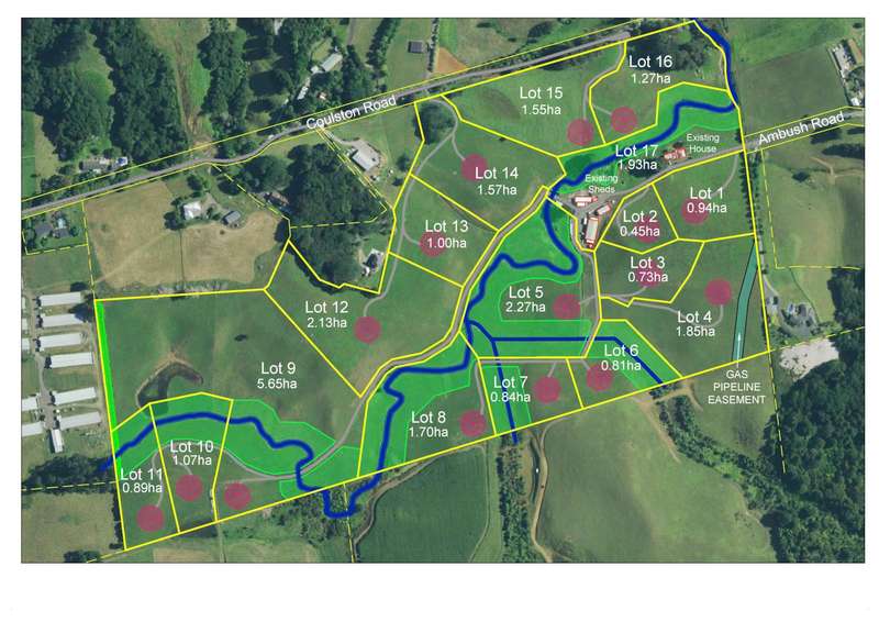 Located on the fringe of one of New Zealand’s most progressive development regions with the planning underway for an impressive large scale new town that will make Drury the place to be! For smart investors, properties in this prime location are rarely available. • Large land holding of 26.7ha (more or less) • Road frontage on Coulston Road and entrance on Ambush Road • Land bankers / contractors / owner occupiers – a must view • Benefit from the Government investment into infrastructure for the area • Situated in a highly sought-after and fast-growing area with major developments – Drury South Industrial Park, Kiwi Properties shopping mall and Fisher and Paykel’s planned research and development centre campus • Large blocks like this are becoming harder to find in the area • The infrastructure is there to run a business and maintain farming income. All the work is all done while you carry out your development plan or just landbank • A four-bedroom home is rented out and there is extensive shedding, hard surfaces and parking, all in good condition. • Deep water bore servicing the property • Fully-fenced natural stream runs through the property • This site is close to major motorway intersections – Ramarama and Bombay motorway intersection *3km, Drury township and train stations *7-8km’s, Bombay *5km. St Ignatius Catholic School 8km’s and Auckland Airport *32km’s. *(more or less) This location and zoned land are sought-after, with the Auckland Council no longer offering transferable titles within the Franklin area, it has forced a demand for country living without a lot of land. Proximity to the motorway is a bonus for commuters. Be smart and invest now with potential for a business location and obvious potential future gains in this key destination. For the purpose of this transaction the vendor is GST Registered and the Purchase Price Plus GST (if any). Call today for more information.