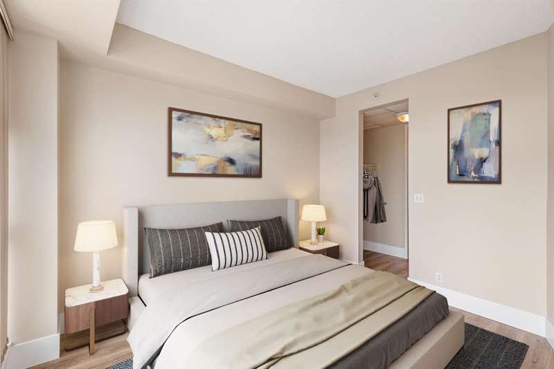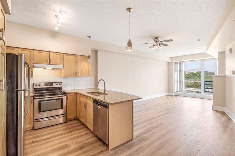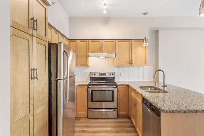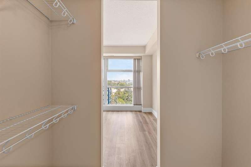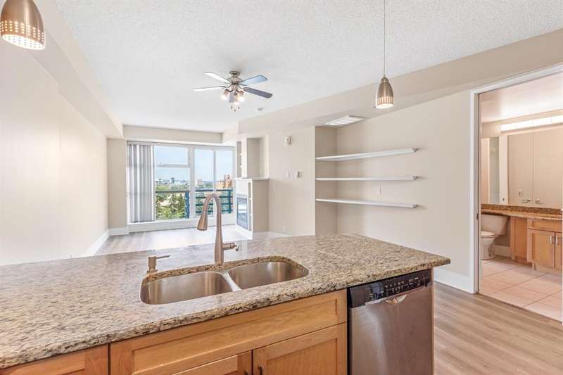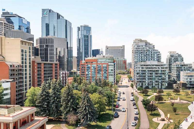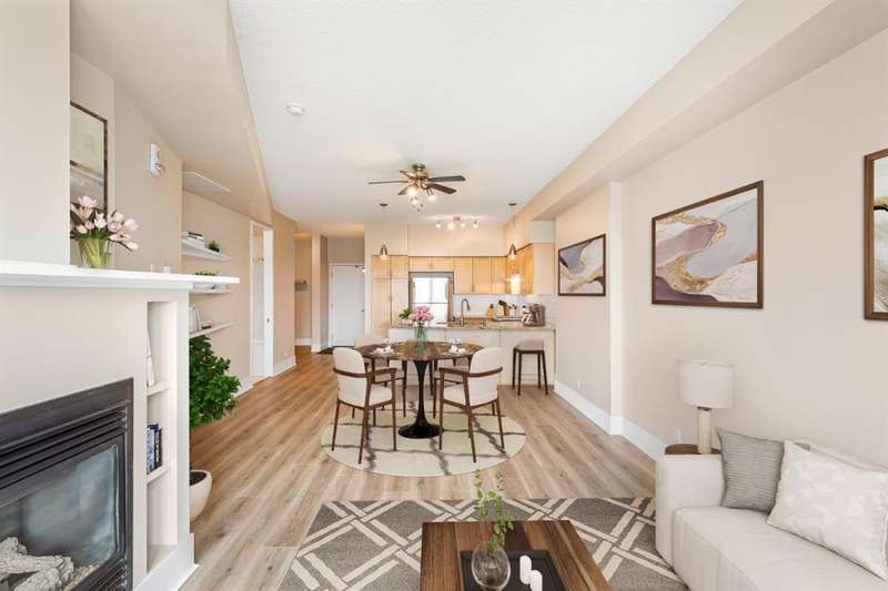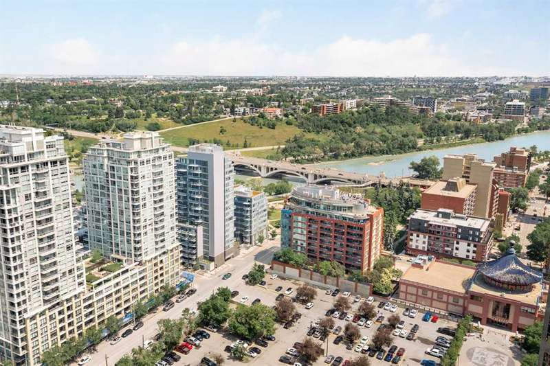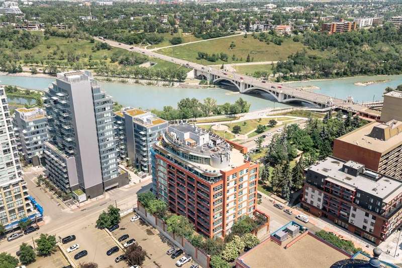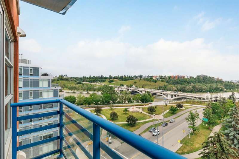 Welcome to 205 Riverfront: an immaculate condo building overlooking the Bow River and situated in the heart of Chinatown. Indulge in a rare opportunity to own a beautifully appointed 8th floor suite in one of Calgary’s most desirable downtown addresses. This spacious and light-filled 1 Bed 1 Bath offers nearly 800 square feet of stylish urban living, highlighted by floor-to-ceiling windows that frame captivating views of the Bow River, Centre Street Bridge, and the vibrant city skyline. The thoughtfully designed open concept layout features a modern kitchen with granite countertops and stainless-steel appliances, seamlessly flowing into the living and dining areas—perfect for both entertaining and everyday living. A cozy gas fireplace and custom built-ins add warmth and character, while the expansive private balcony invites you to relax and take in sweeping views of the stunning surroundings. The serene bedroom retreat includes a walk-through closet and luxurious 4-piece ensuite. A versatile den upon entering is the perfect home office, fitness area, reading nook, or bonus storage space. Additional highlights include fresh paint and brand new laminate flooring throughout, central A/C and heat, in-suite laundry, and an underground parking stall in the heated parkade. Positioned directly across from the Bow River Pathway system and Sien Lok Park, and mere steps to shops in Eau Claire, Chinatown, East Village, and the Downtown Core, this location offers unmatched convenience. Enjoy 24-hour concierge service, secure concrete construction, and easy access to the LRT, bountiful restaurants, cafes and lounges, entertainment venues, and Calgary’s +15 network. Whether you’re a professional, an investor, or looking to integrate into the heart of the city, this is your chance to live in a truly iconic location where comfort, style, and walkable city living meet.