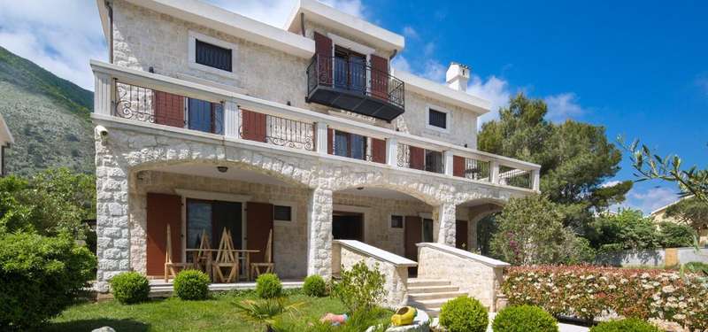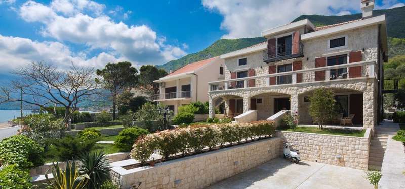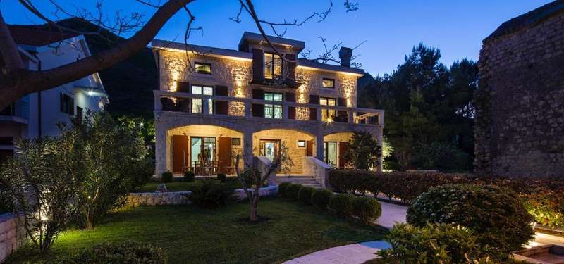 This beautiful waterfront villa for sale is located in Prcanj, next to the famous landmark historical monument 'Tre Sorelle'. The plot measures an area of 910m2, with a beautiful green yard, swimming pool, and children's playground.