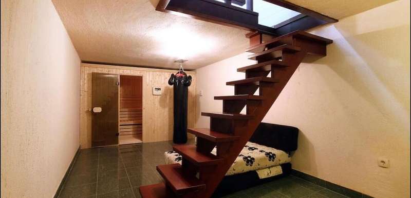 In the basement, there is a wine cellar and a sauna for six persons.
