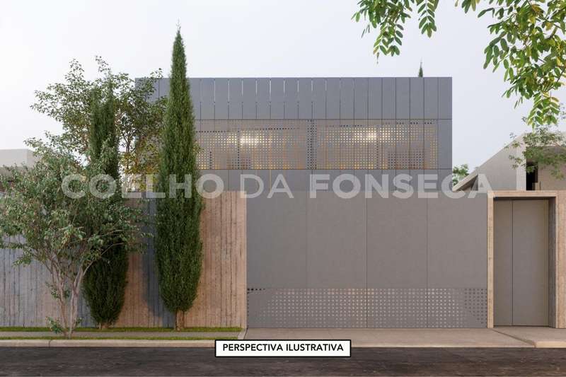 Fachada ventilada com venezianas perfuradas: Além de um visual contemporâneo, as venezianas produzem jogos de luz e sombra durante o dia e transformam-se em elementos iluminados à noite.