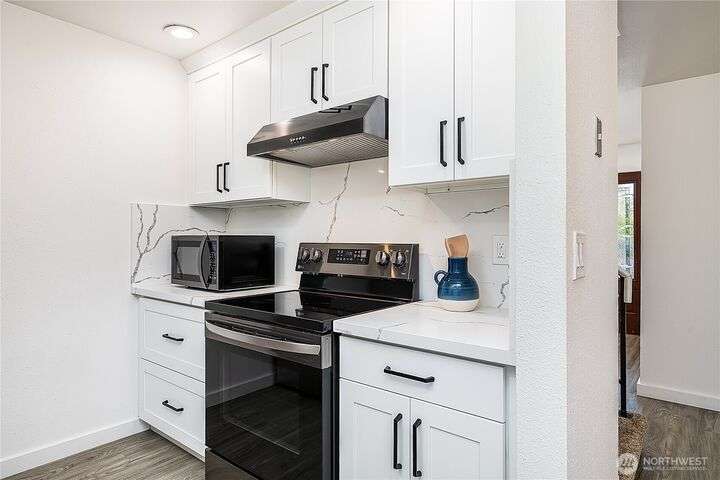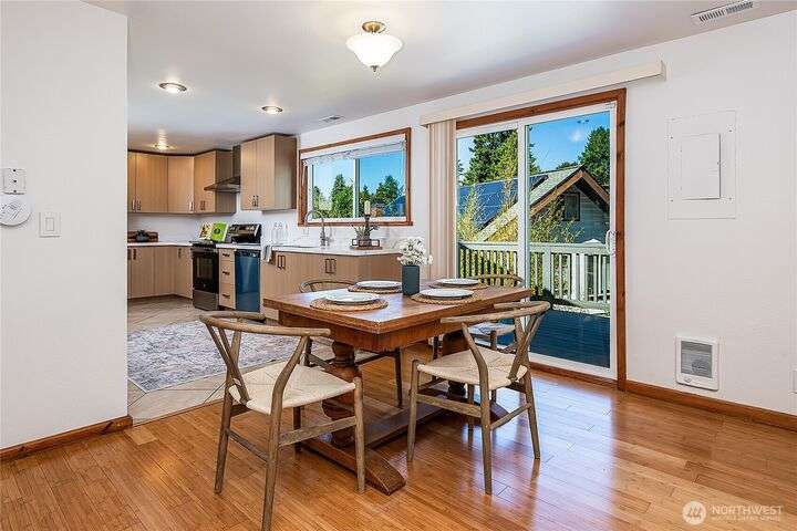Located at the end of a quiet street this remodeled Shoreline duplex blends thoughtful design with unmatched flexibility. Each unit enjoys its own private yard and garage, ideal for multigenerational living, rental income, or house hacking. Inside, both homes have been completely refreshed with new kitchens, updated finishes, and modern, light-filled spaces. The larger unit includes generous living and dining areas that open to a sunny back deck, perfect for entertaining. The second unit features a clean, efficient layout ideal for tenants, guests, or extended household needs. Just minutes from the new light rail, parks, groceries and schools. This is a rare opportunity to own a turn-key property in a growing and well-connected neighborhood